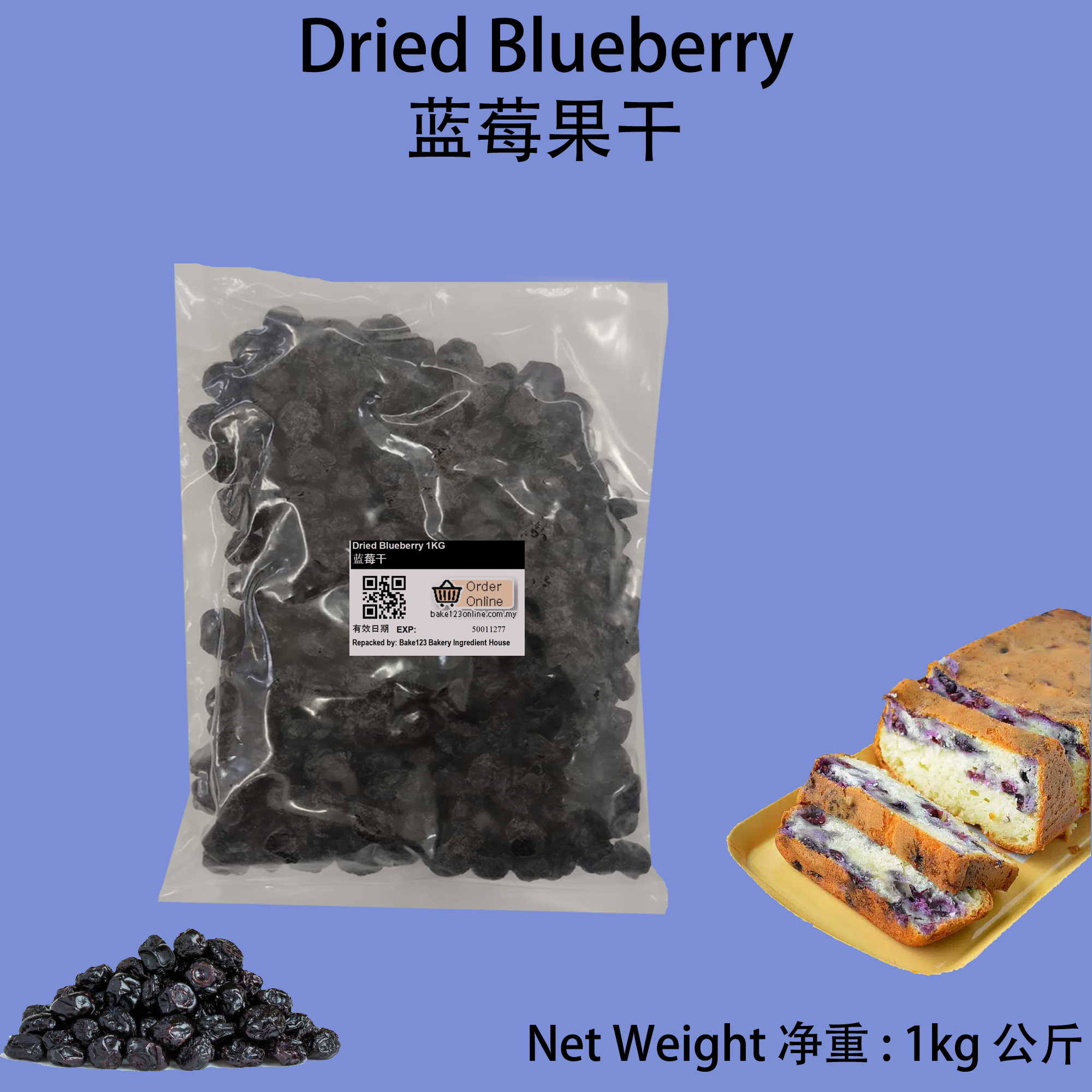 Product Name 产品名称 : Dried Blueberry / 蓝莓干 Net Weight 净重 : 1kg 公斤