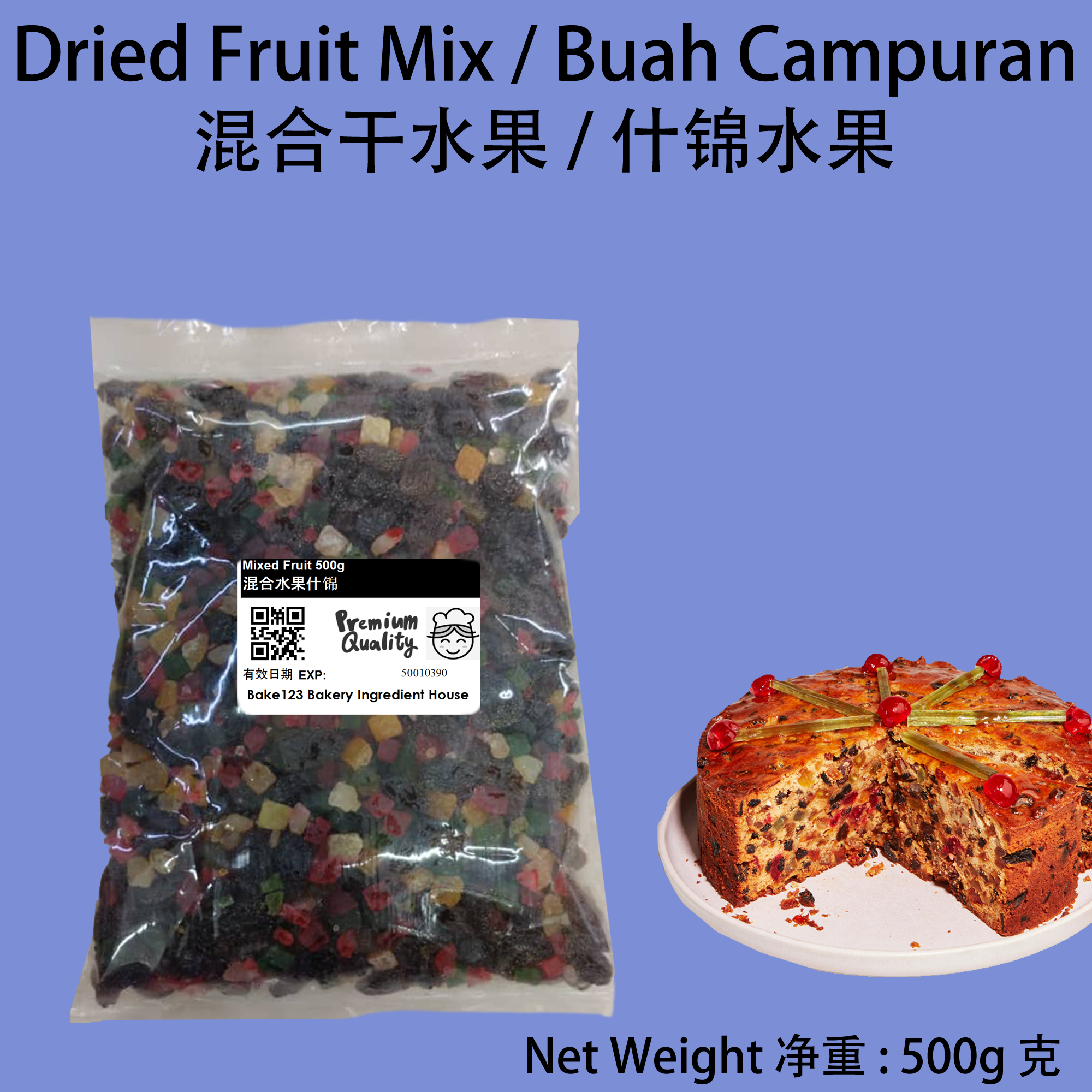 Product Name / 产品名称: Dried Mixed Fruits 混合干果 Net Weight / 净重: 500g