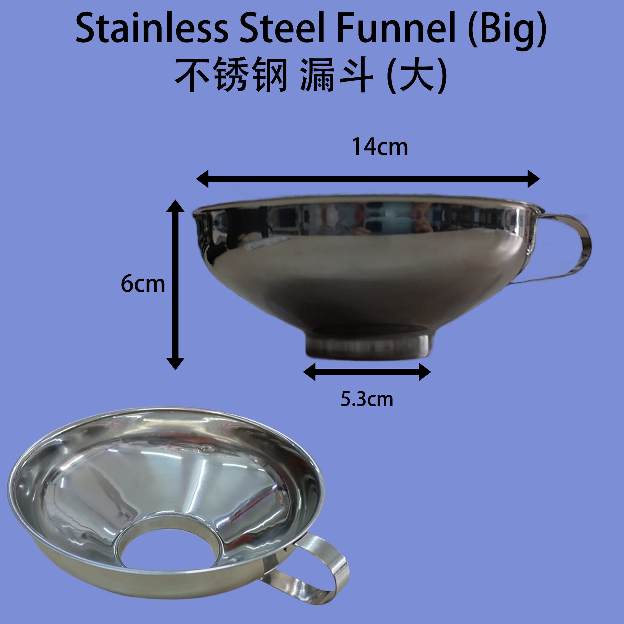 Product Name 产品名称: Stainless Steel Funnel (Big)