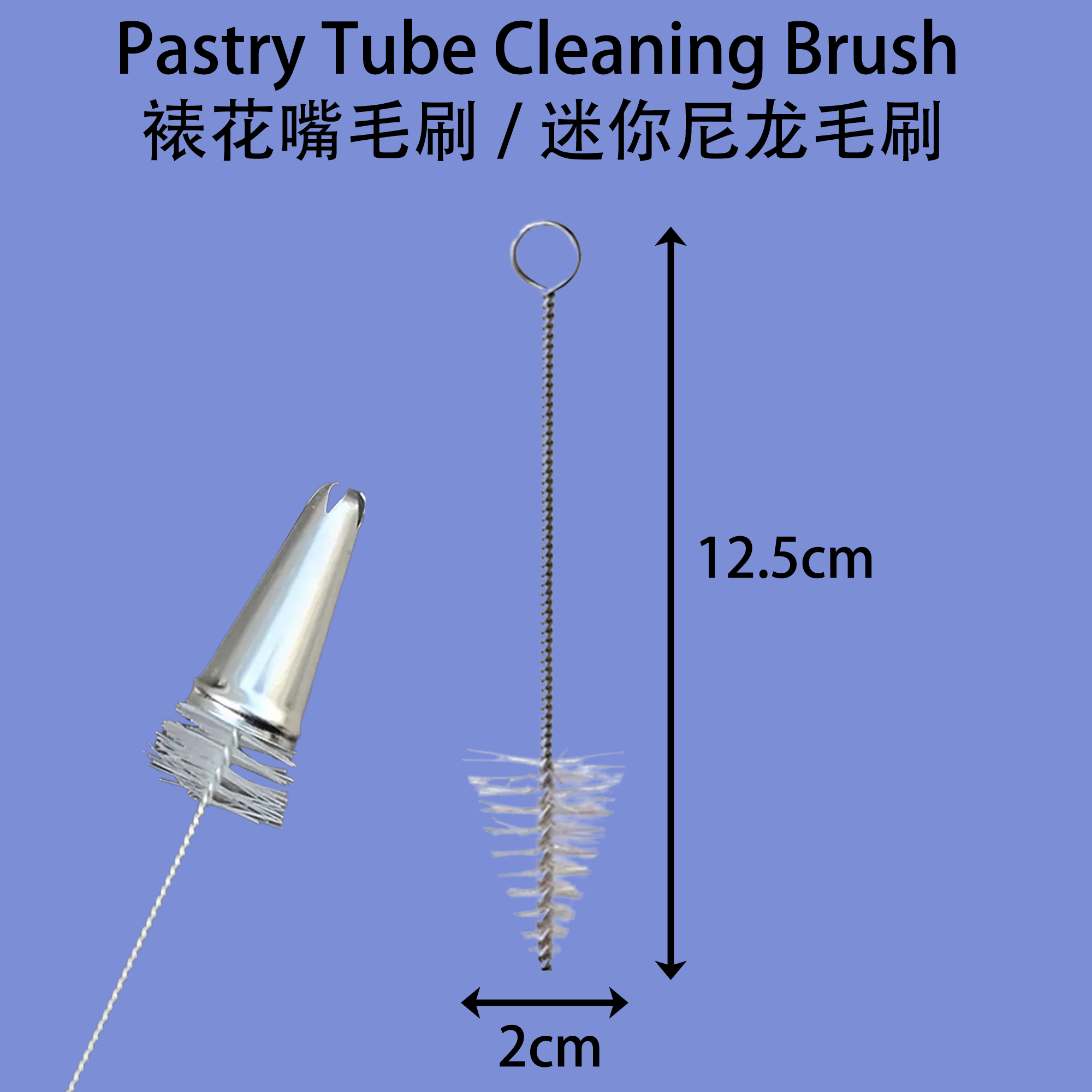• Measuring at a convenient 12.5 cm in length with a 2 cm wide bristle head, this sleek cleaning brush effortlessly reaches into all types of nozzle tips, 这款清洁刷长 12.5 厘米,刷毛头宽 2 厘米,方便使用,可轻松清洗所有类型的裱花嘴