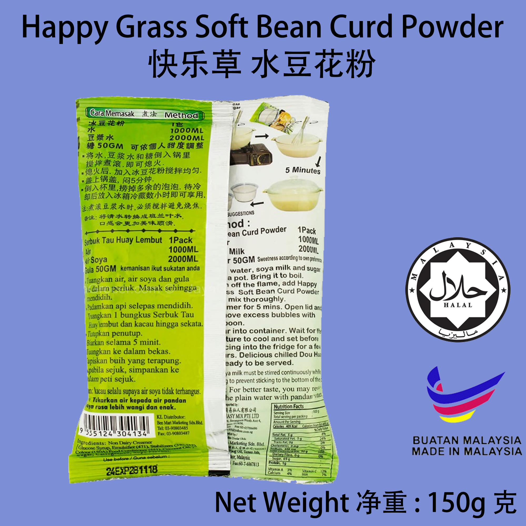 Product Name / 产品名称: Happy Grass Soft Bean Curd Powder 水豆花粉