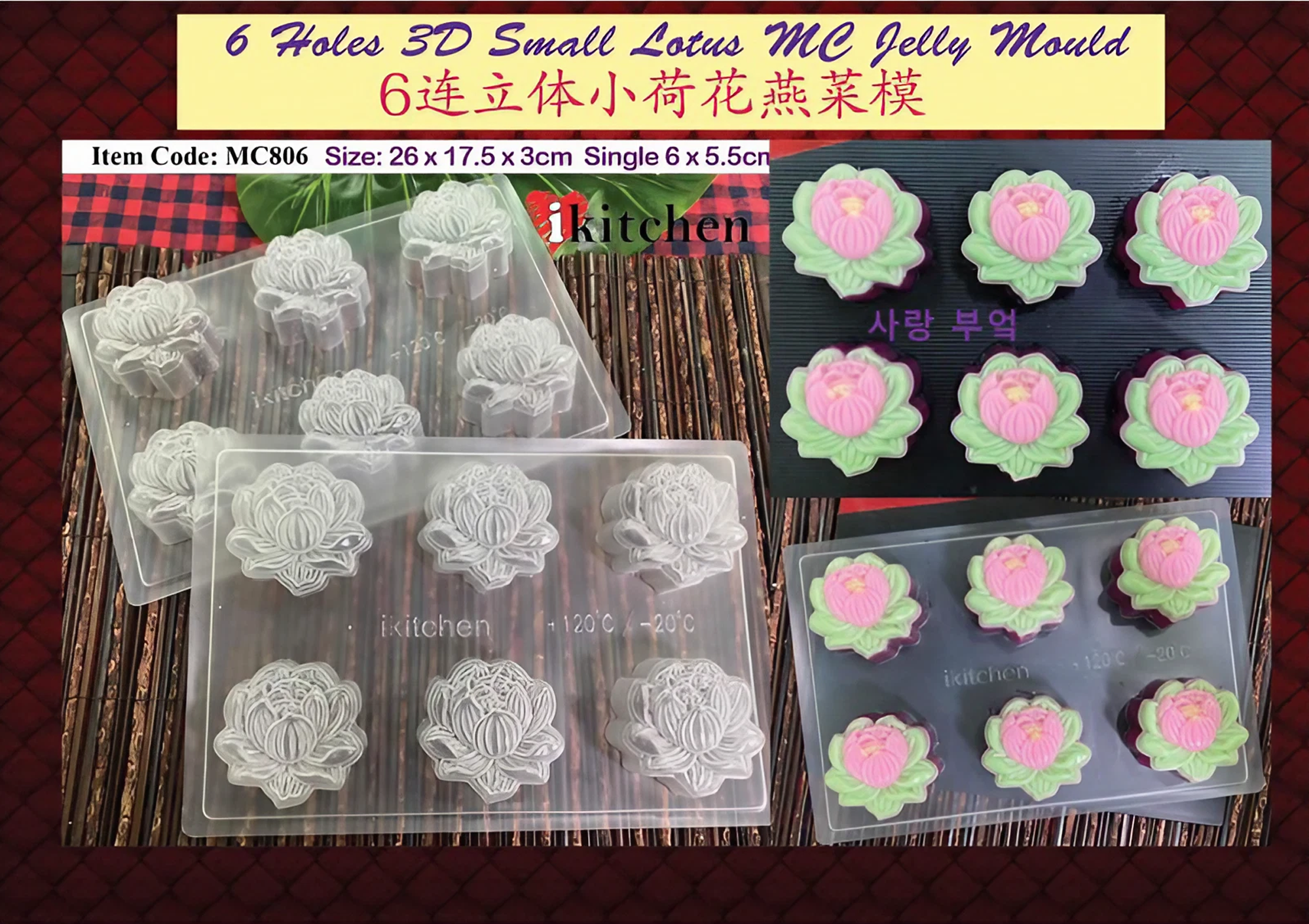 Product Name / 产品名称: 6 Holes 3D Lotus MC Jelly Mould (MC806) 六孔3D莲花果冻模具