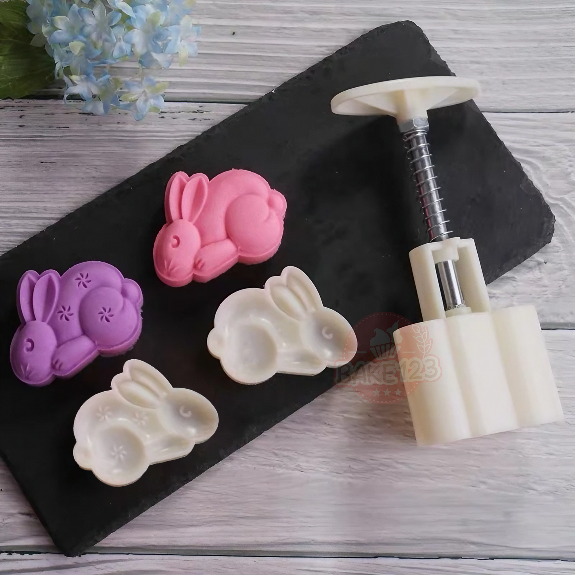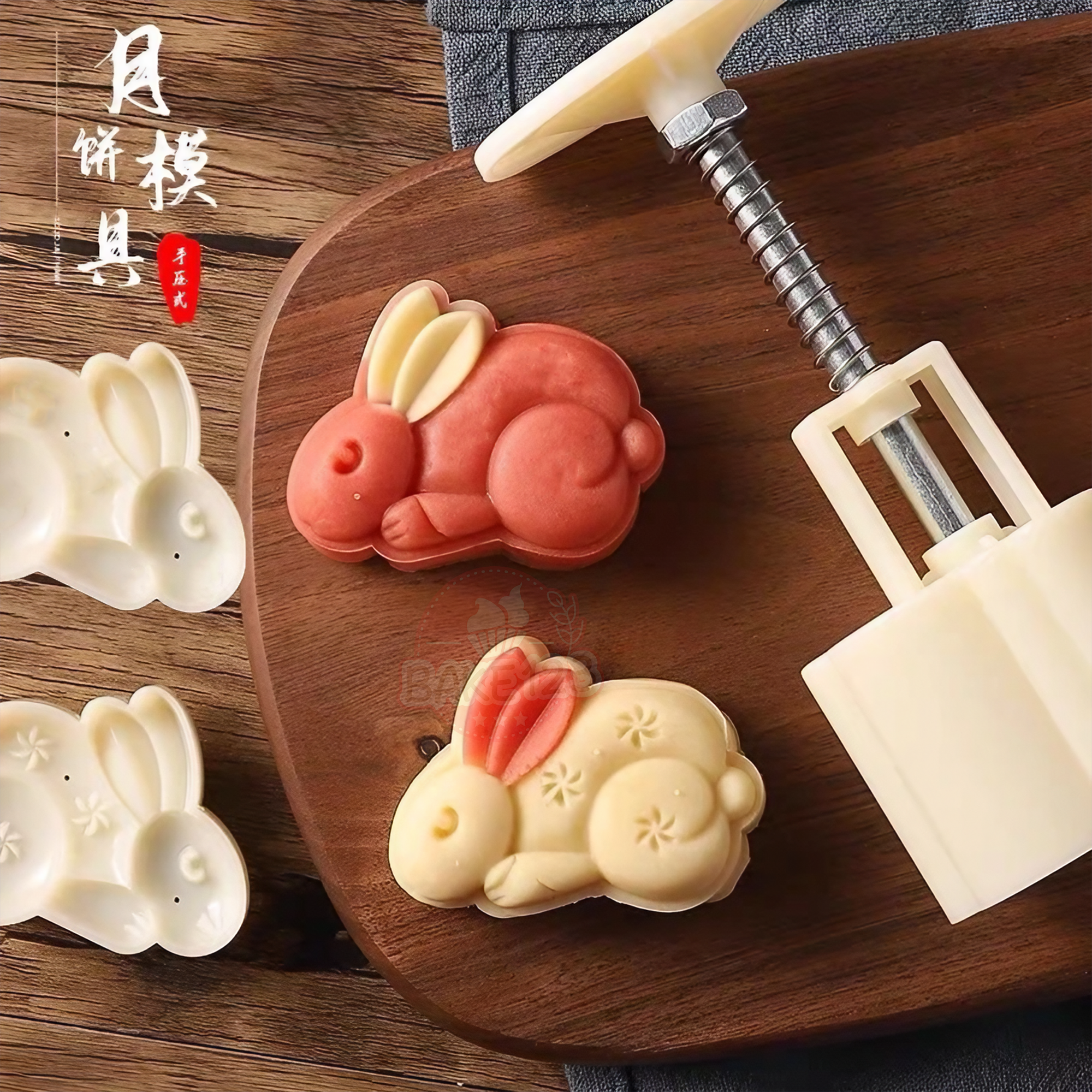 Product Name / 产品名称: MC742 - 2pcs 65g Bunny Rabbit Mooncake Plunger Mould 65克玉兔/小兔子传统月饼模具
