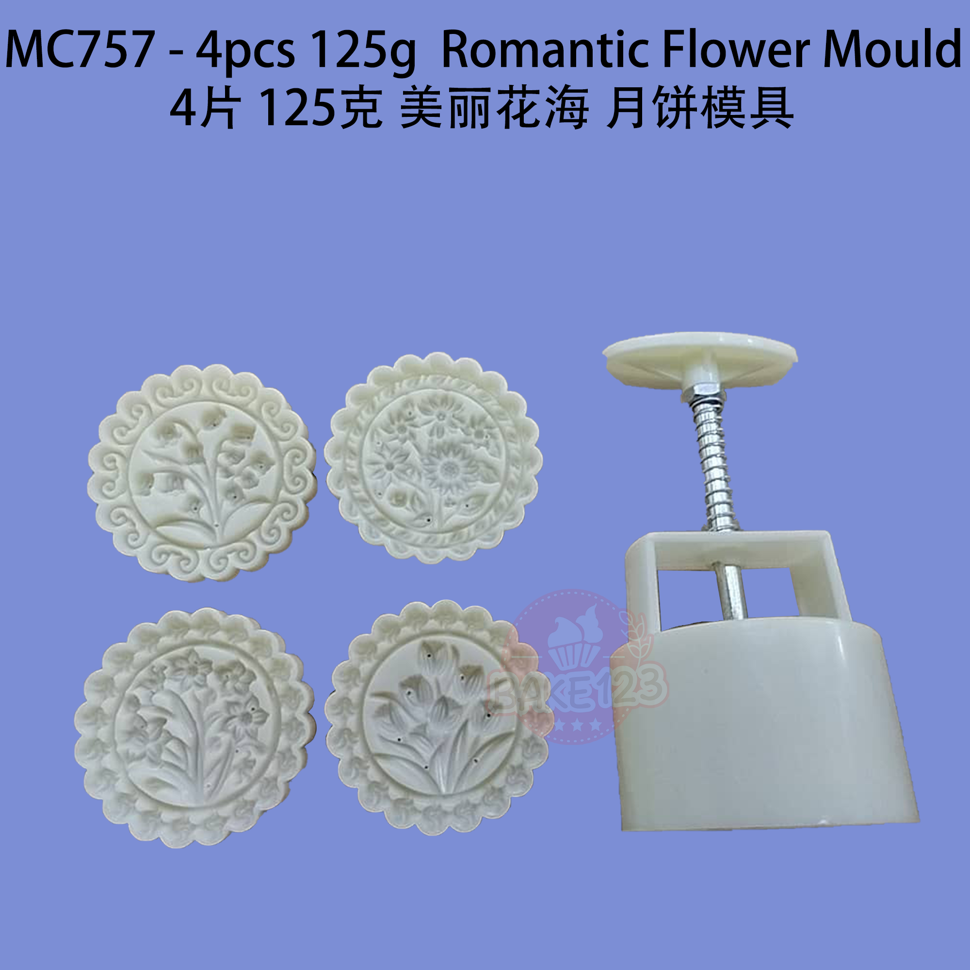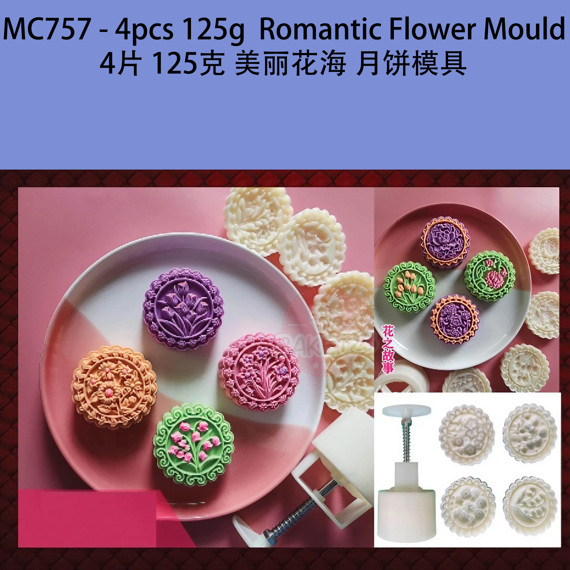 Product Name / 产品名称: MC757 - 4pcs 125g Romantic Flower Mould 4片125克美丽花海月饼模具