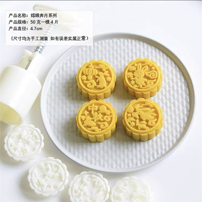 Product Name / 产品名称: MC732 - 4pcs 50g Chang Er Mooncake Plunger Mould 4片50克嫦娥奔月传统月饼模具