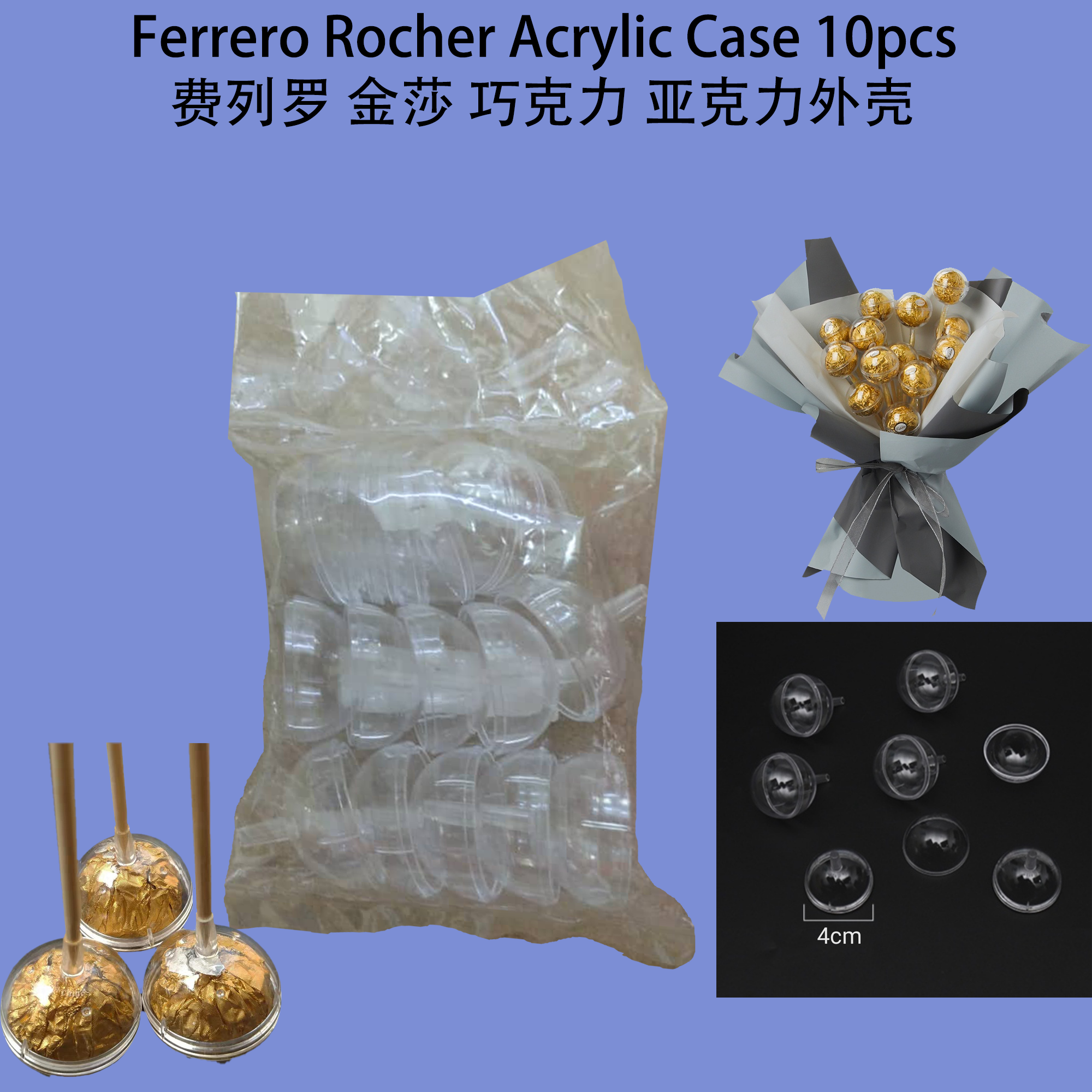 Product Name / 产品名称: Ferrero Rocher Acrylic Cases 10pcs 费列罗金莎巧克力亚克力外壳