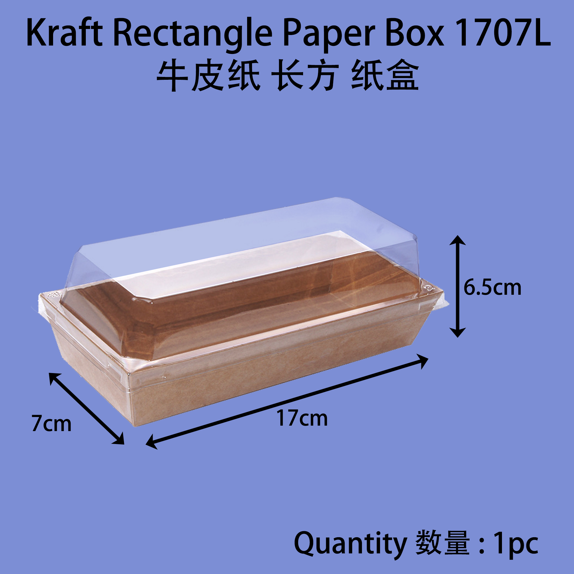 Product Name / 产品名称: Disposable Kraft Cake / Sandwich Box Rectangle 1707L
