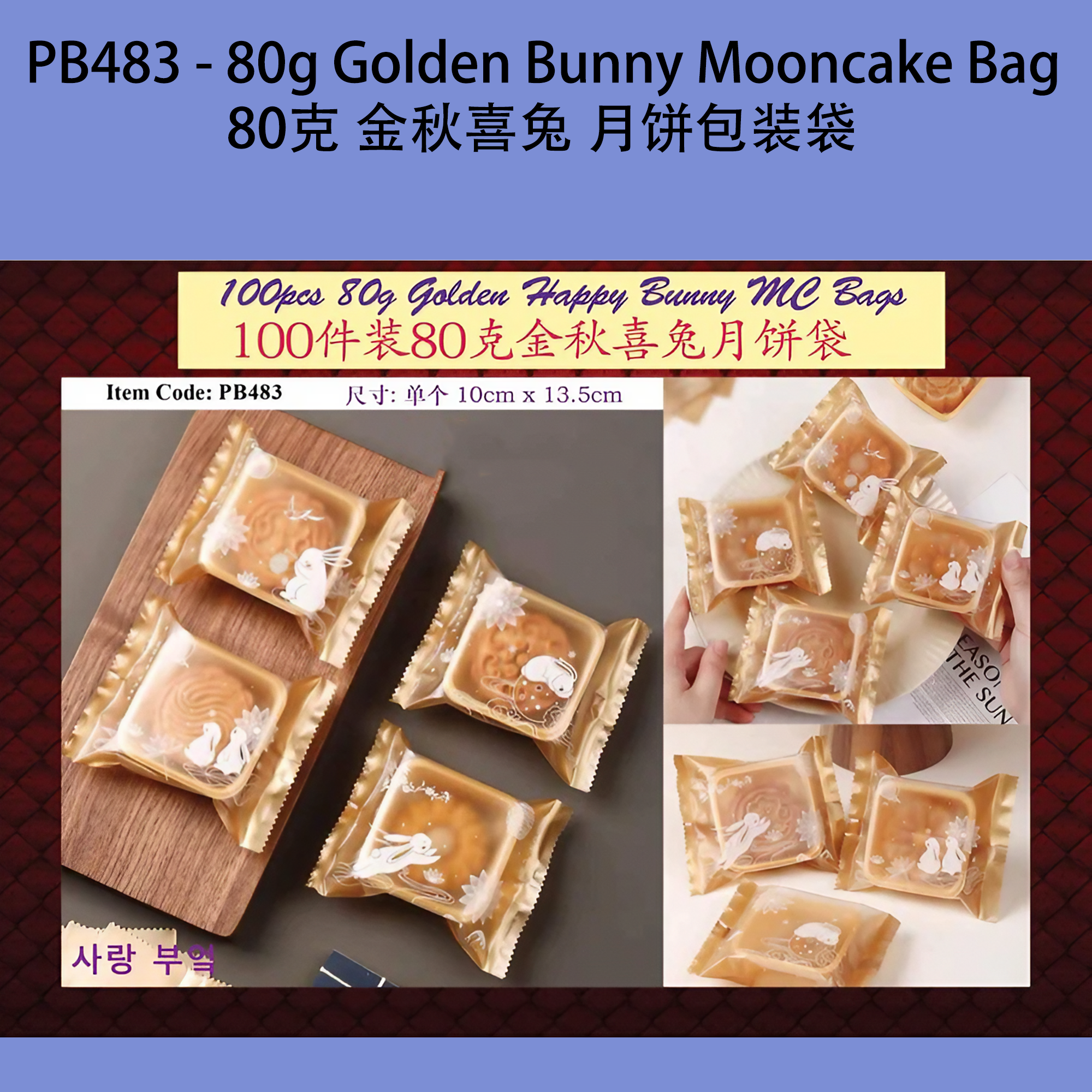 Product Name / 产品名称: PB483 - 80g Golden Bunny Mooncake Packing Bag