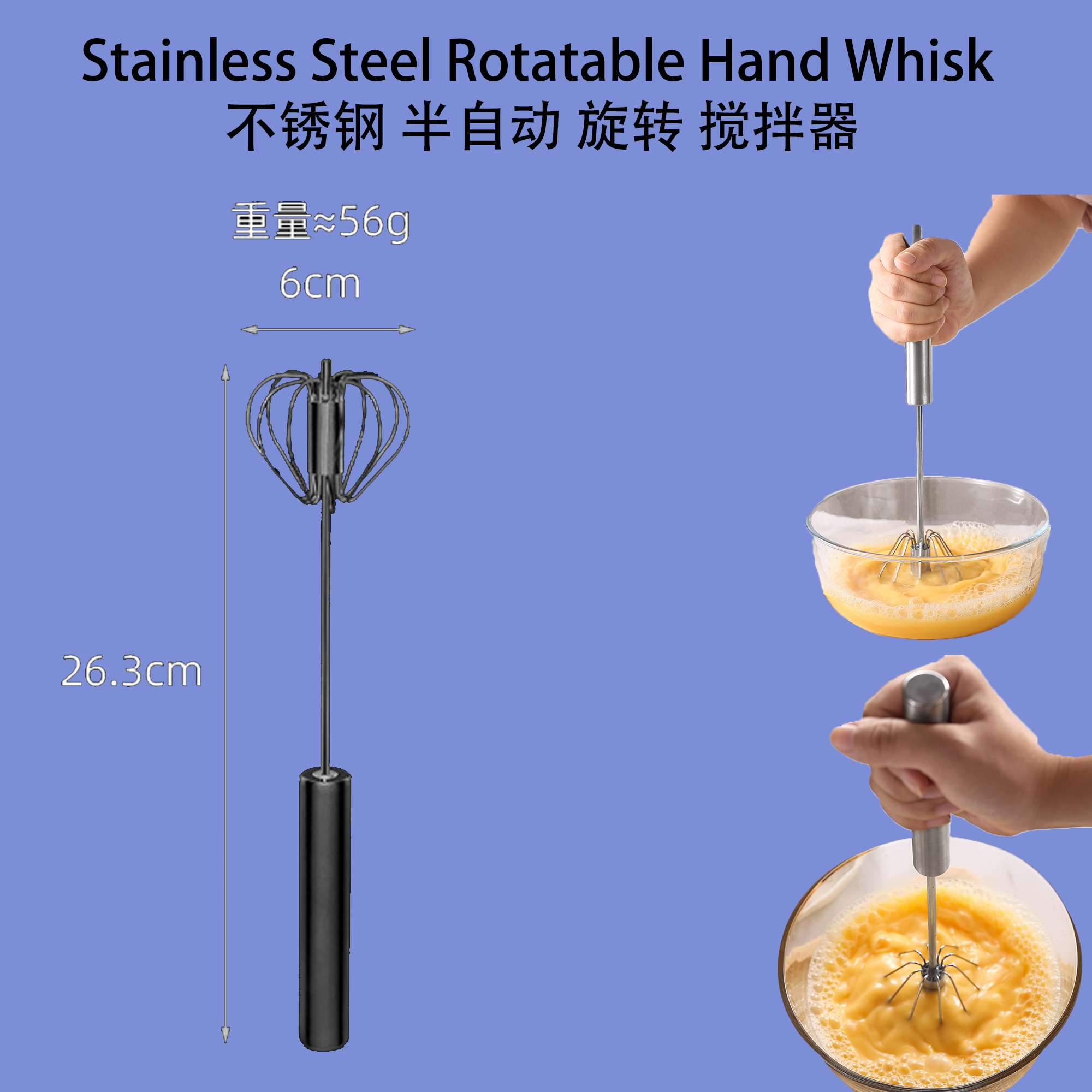 Product Name 产品名称: Stainless Steel Rotatable Hand Whisk Mixer 不锈钢半自动旋转搅拌器