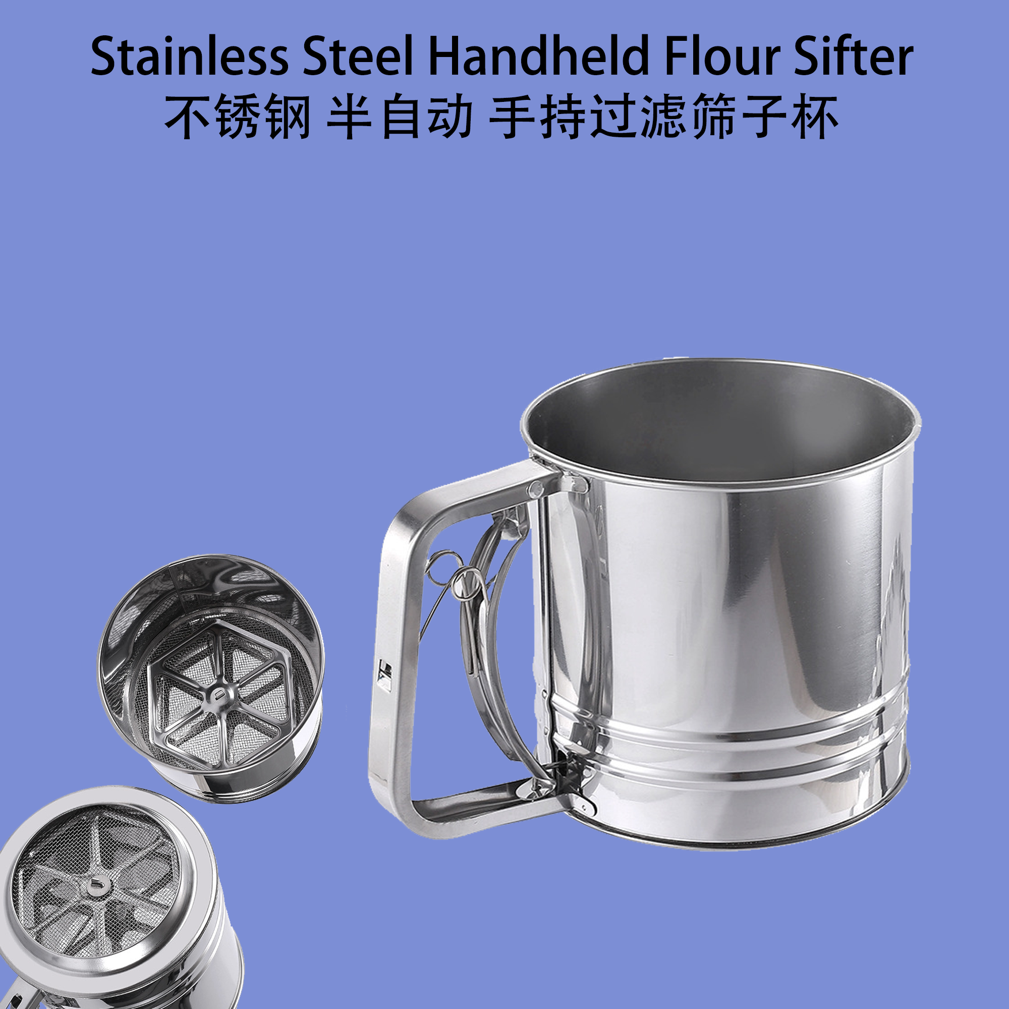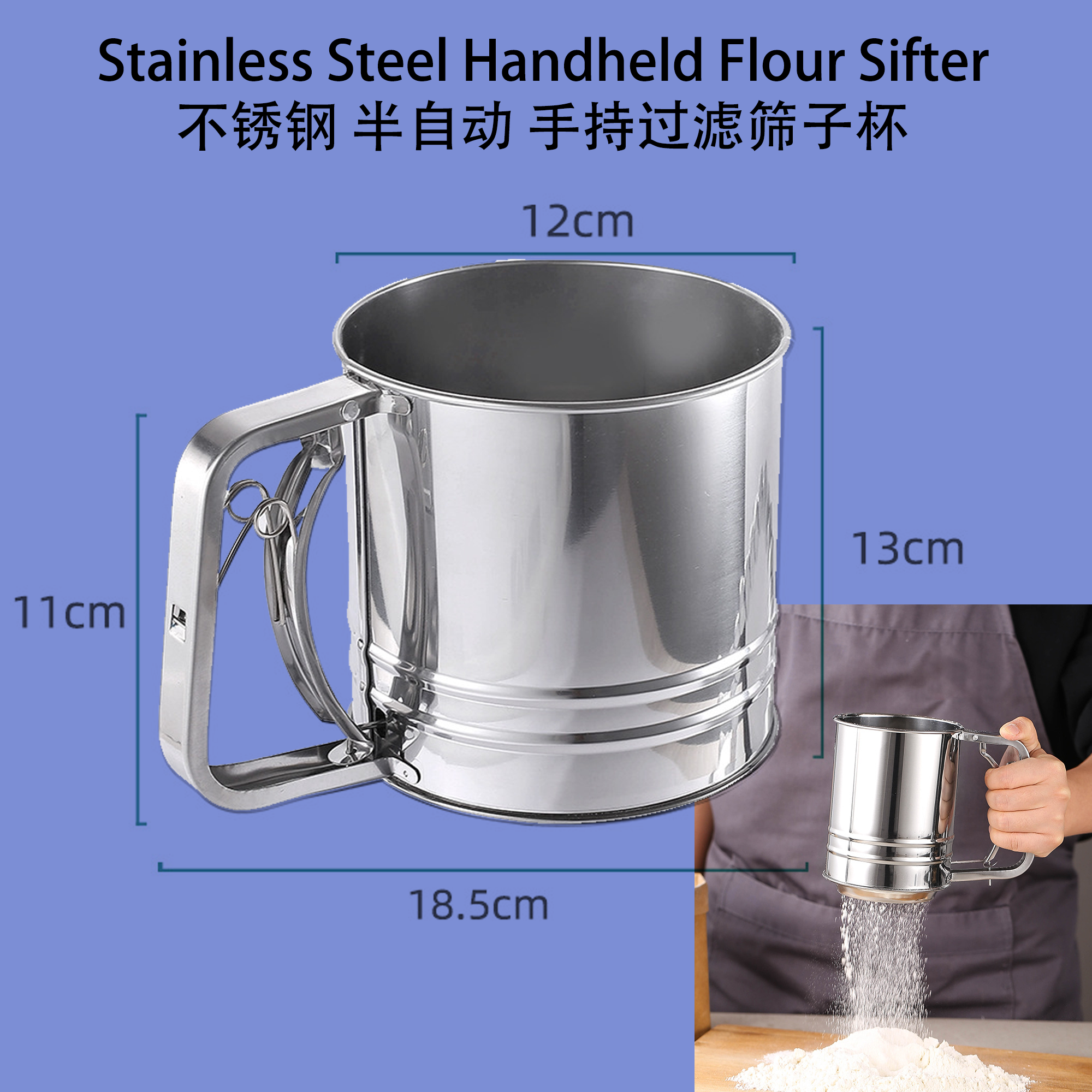 Product Name 产品名称: Stainless Steel Handheld Flour Sifter 不锈钢半自动手持过滤筛子杯