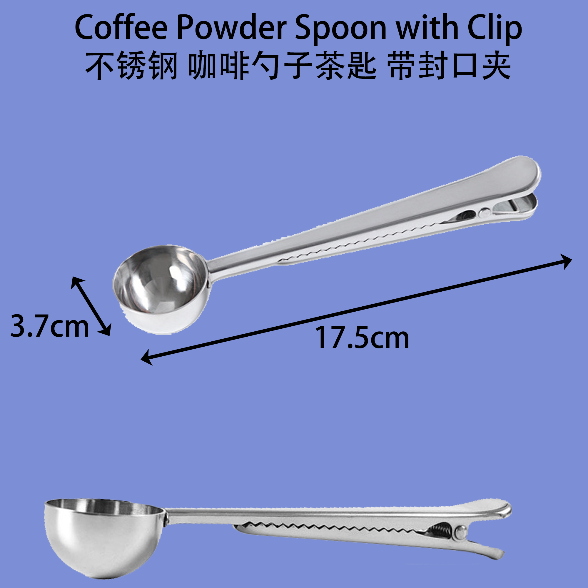 This coffee powder spoon with a clip is a convenient tool for any coffee lover, combining functionality and practicality. 这款带封口夹的咖啡勺子是任何咖啡爱好者的便利工具,兼具功能性和实用性。