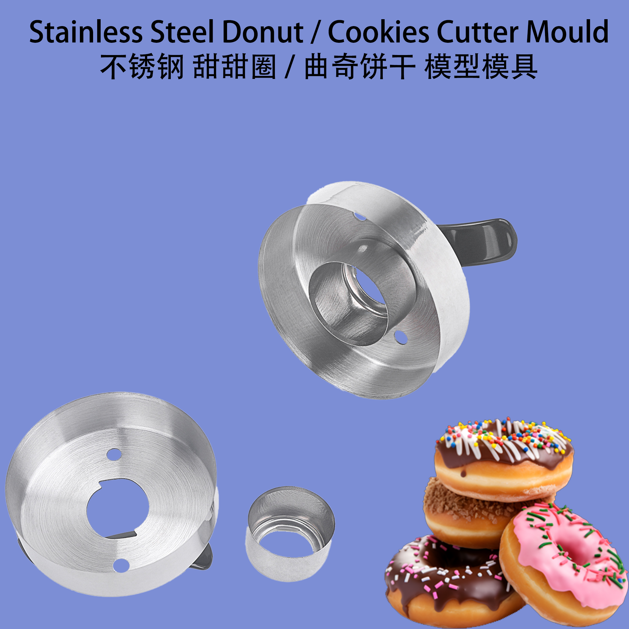 Usage 用途 : Ideal for cutting dough to make donuts, cookies, and various pastries with consistent shapes. 用于切割面团制作甜甜圈 / 曲奇饼干 / 其他甜点