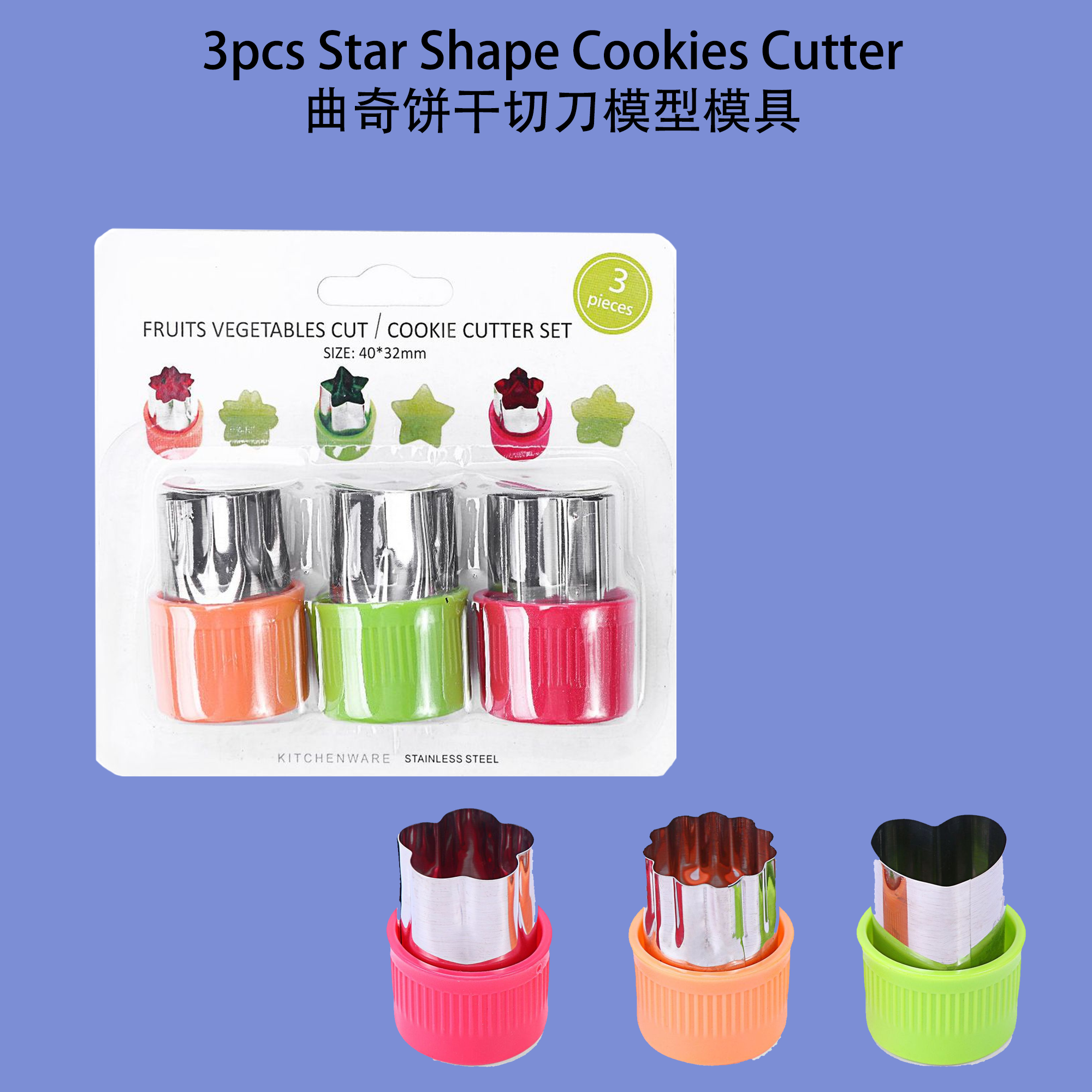 3pcs Star Shape Cookies Cutter (kn12957)