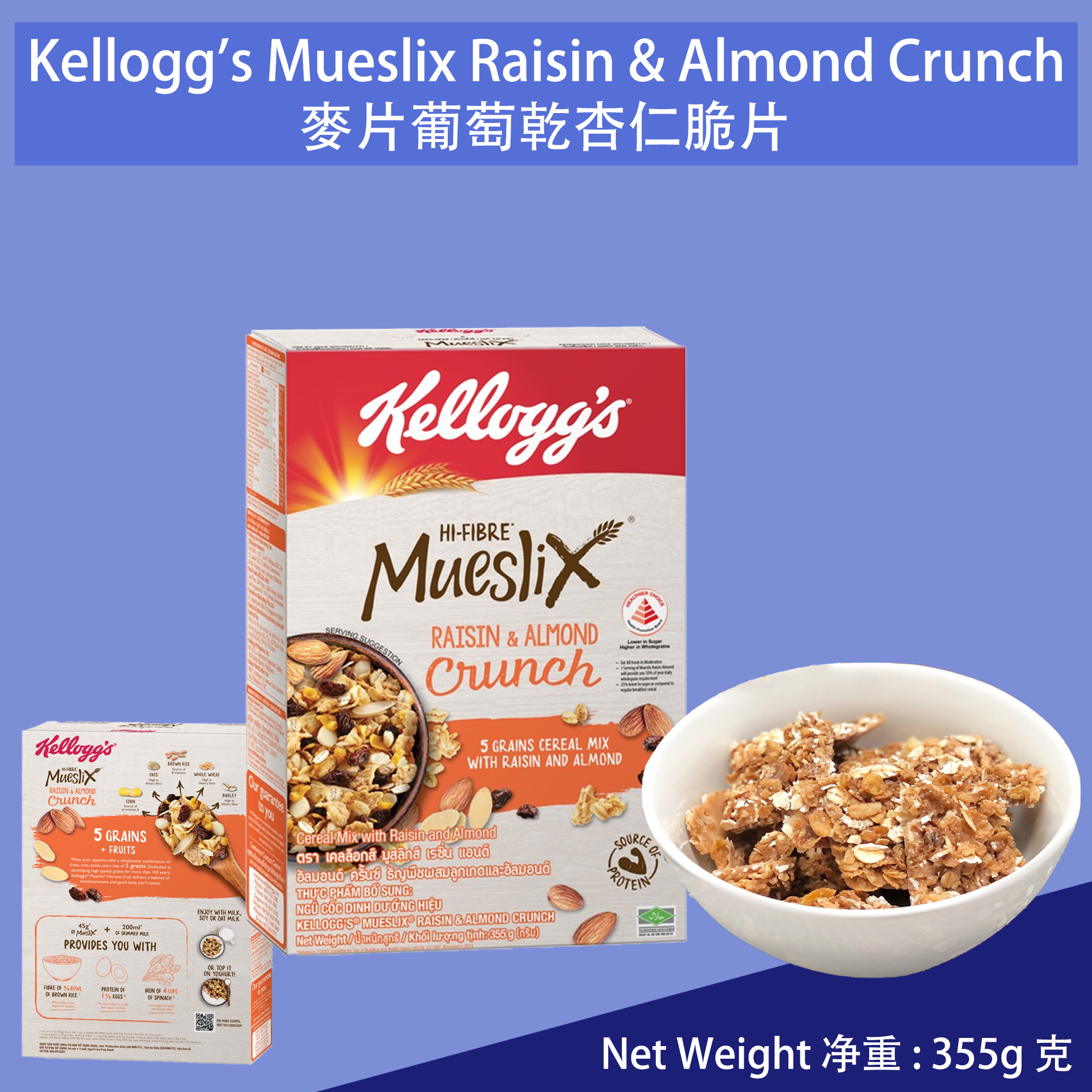 Whether you enjoy it with milk, yogurt, or straight from the box, Kellogg's Mueslix Raisin & Almond Crunch is sure to keep you energized throughout the morning. 无论是配牛奶、酸奶,还是直接食用,家乐氏麦片葡萄干杏仁脆片都能让你整个上午充满活力。