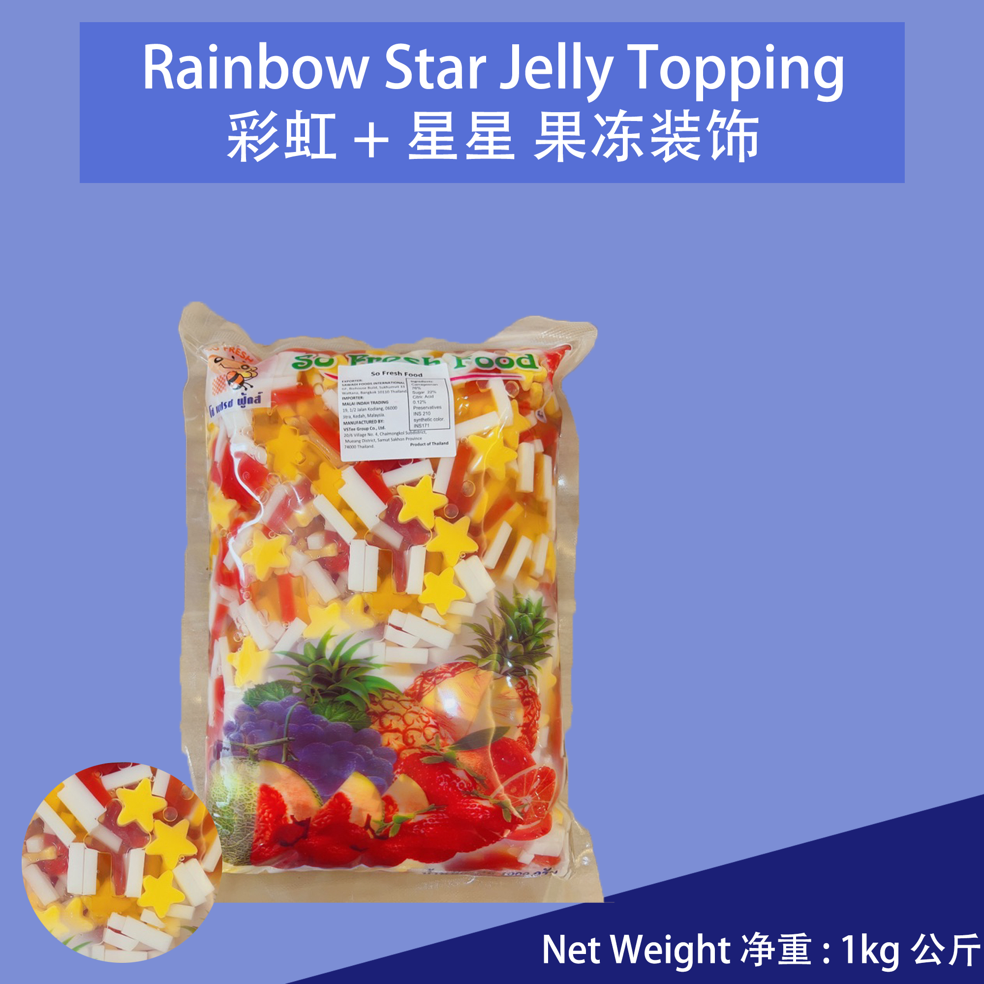 Rainbow 3 Color Strips and Stars - Jelly Topping So Fresh Food Thailand imported / Decoration