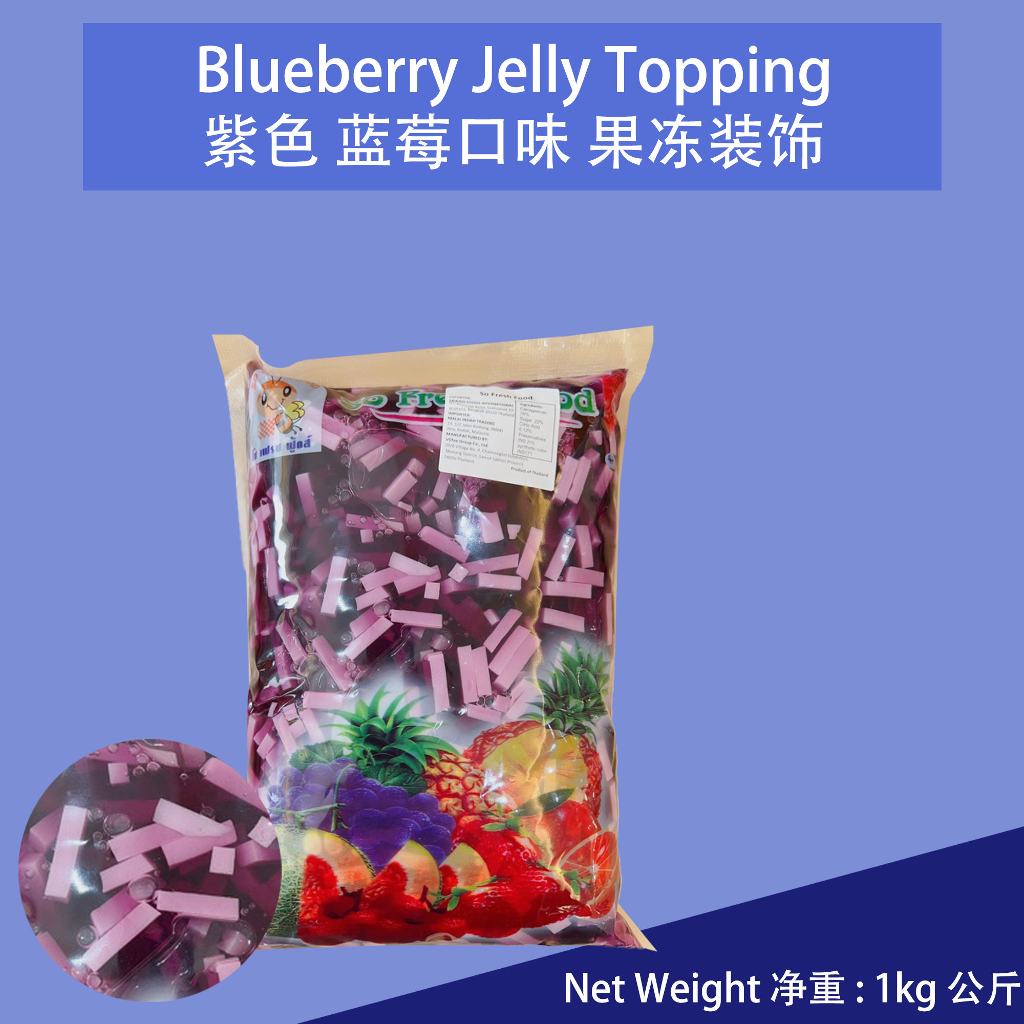 Blueberry Flavored Purple Color Strips - Jelly Topping So Fresh Food Thailand imported