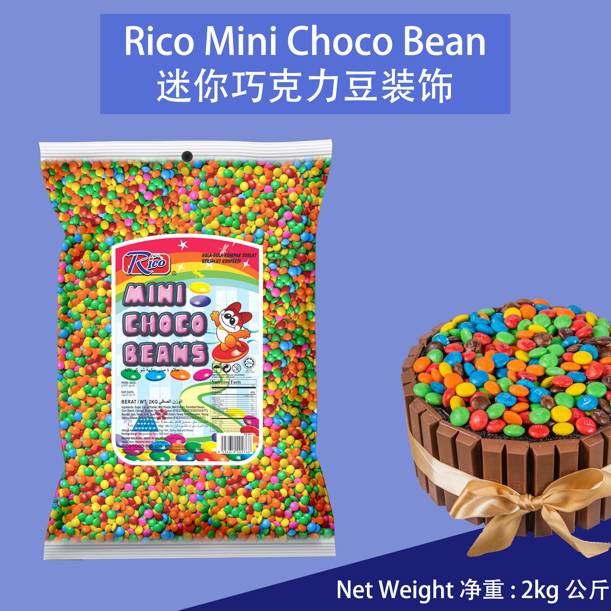 Enhance your desserts and baked goods with these colorful Rico Mini Choco Beans. Perfect for decorating cakes, cookies, and other sweet treats, these mini chocolate beans add a fun and vibrant touch to any creation. 增强您的甜点和烘焙食品的美观,这些彩色的迷你巧克力豆是装饰蛋糕、饼干和其他甜点的完美选择,为任何作品增添了有趣和鲜艳的色彩。
