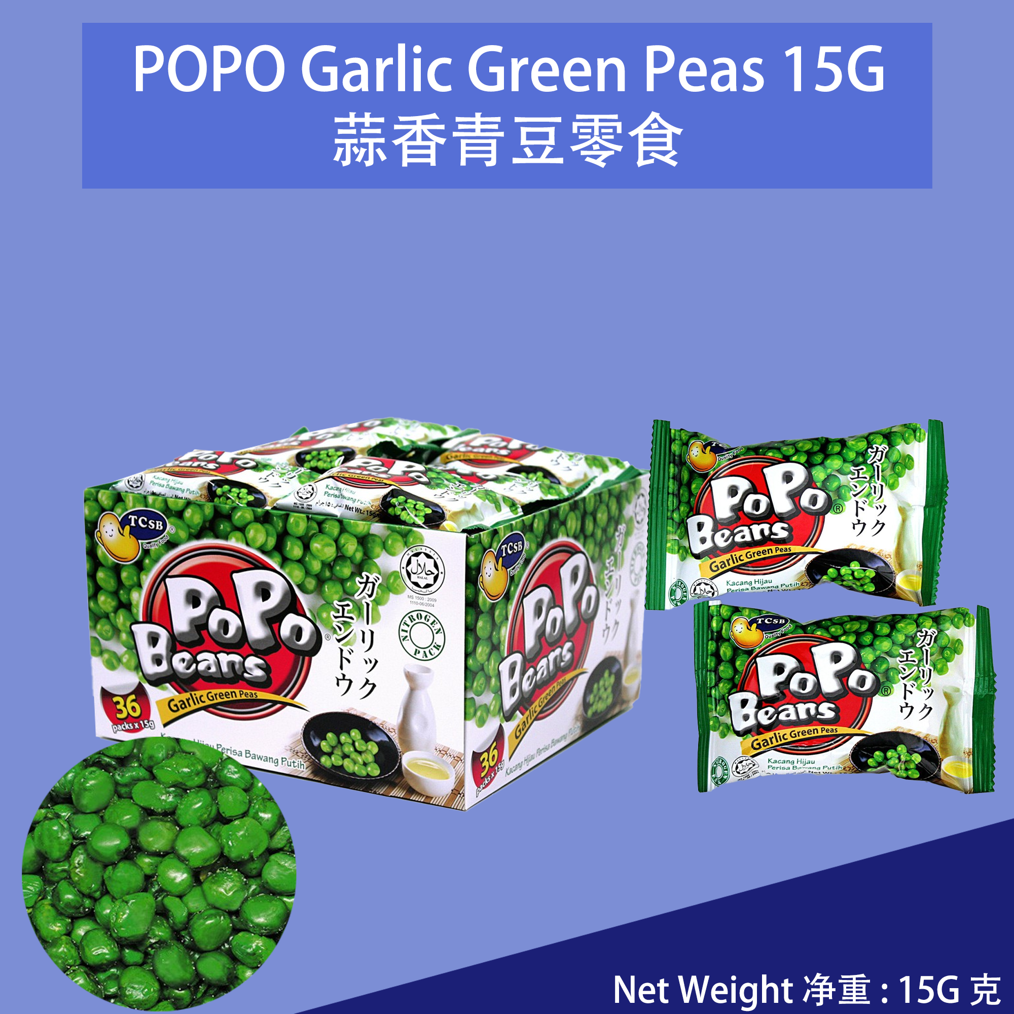 Crunchy and savory, POPO Garlic Green Peas make a perfect snack for any time of the day. Each pack is individually wrapped for convenience, ensuring freshness and ease of carrying. 酥脆可口,POPO蒜香青豆是任何时候的完美零食。每包独立包装,方便携带,保证新鲜。