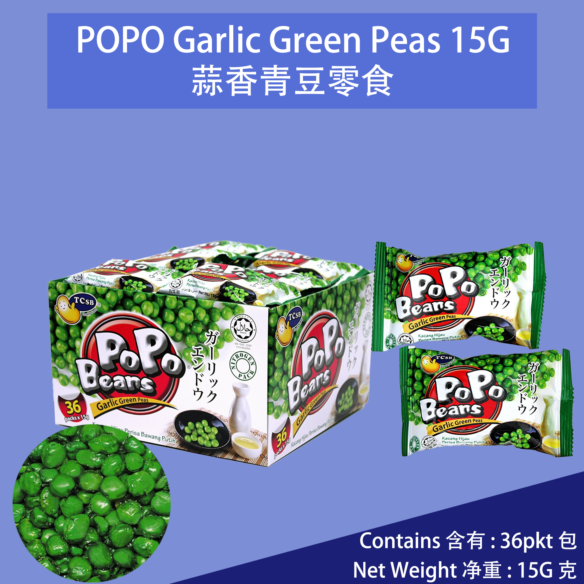 POPO Garlic Green Peas 15G x 36pkt