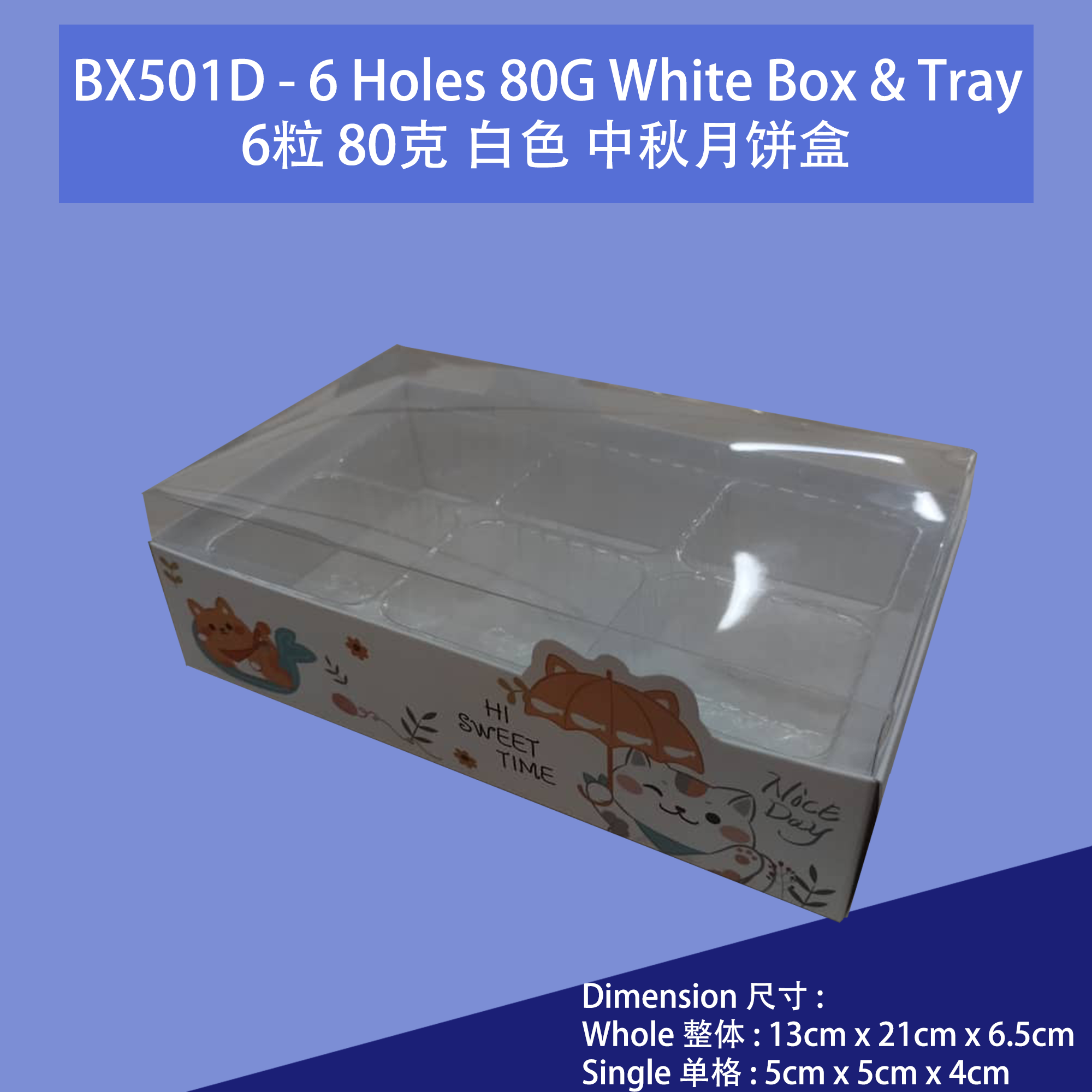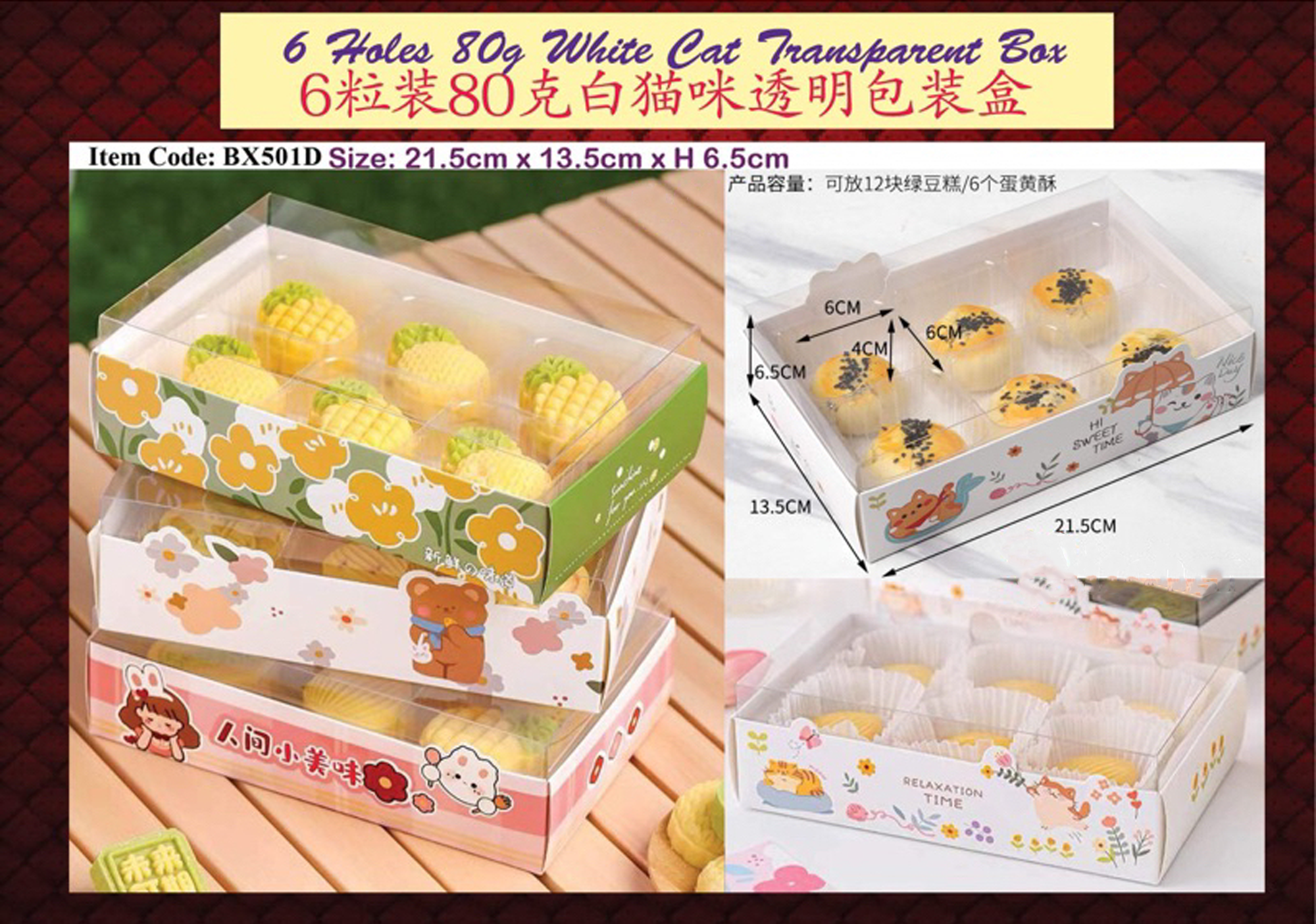 Product Name 产品名称 : 6 Cavity 80g White Cat Transparent Box - BX501D 6粒装80克白色猫咪透明月饼礼盒