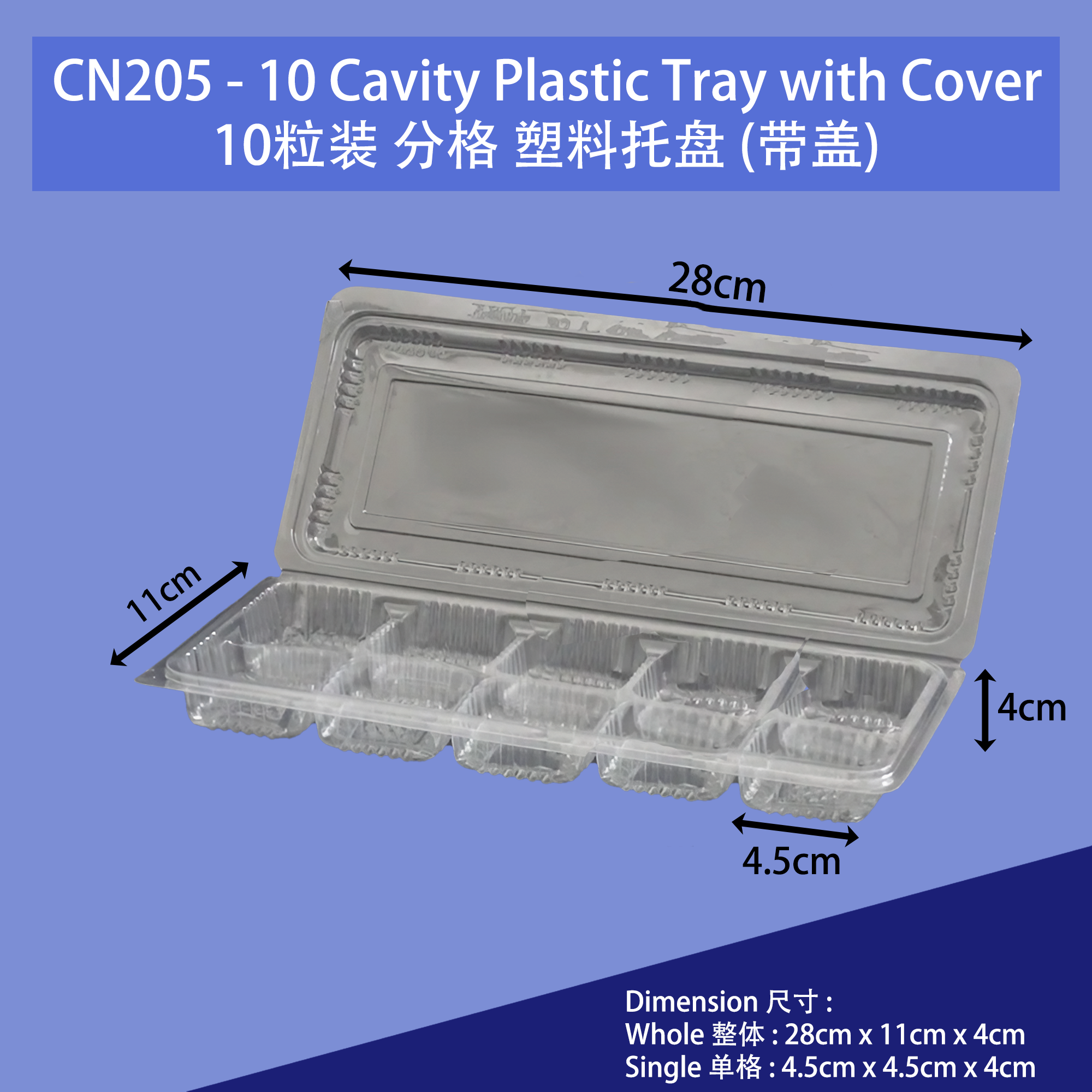 CN205 - 10 Cavity Plastic Tray with Cover