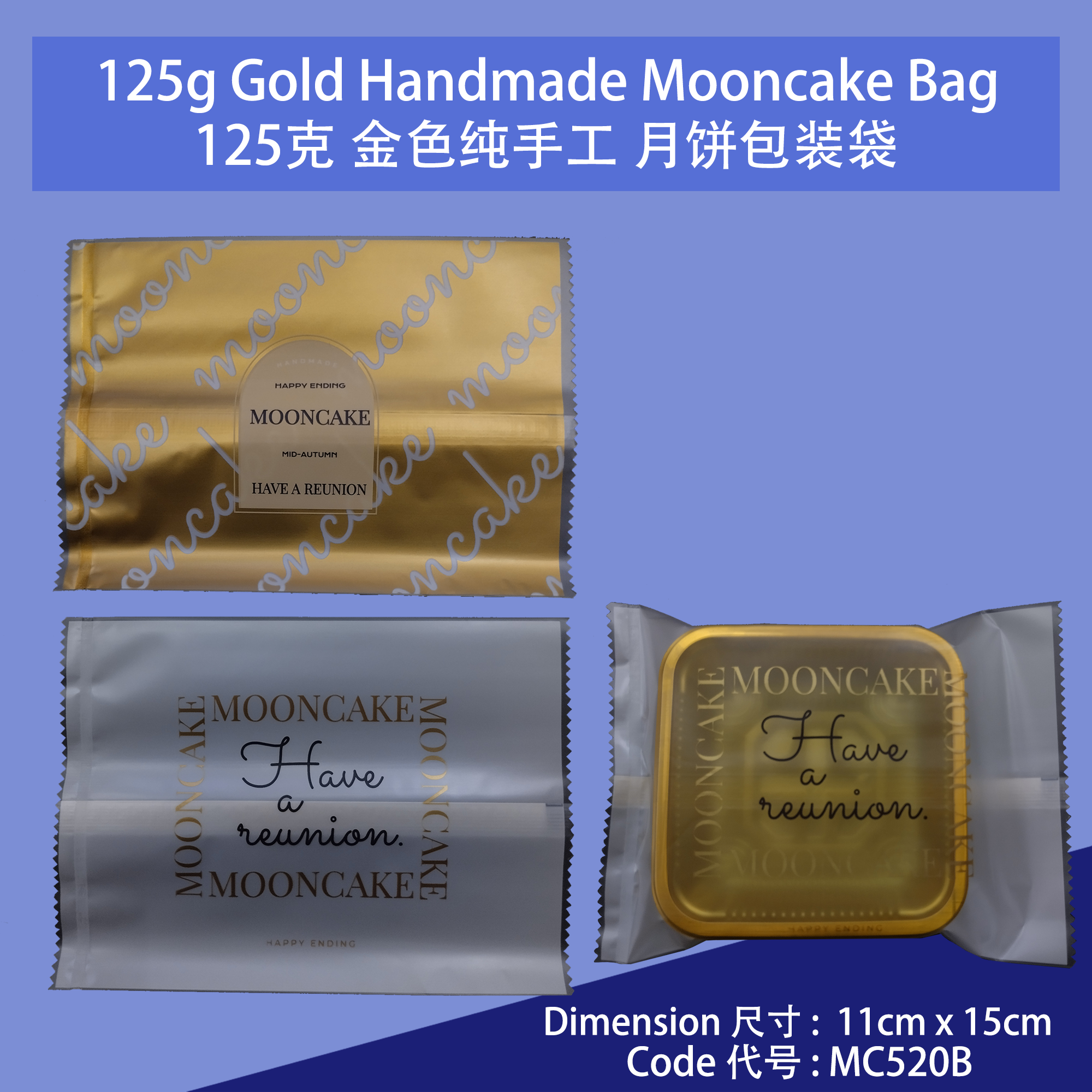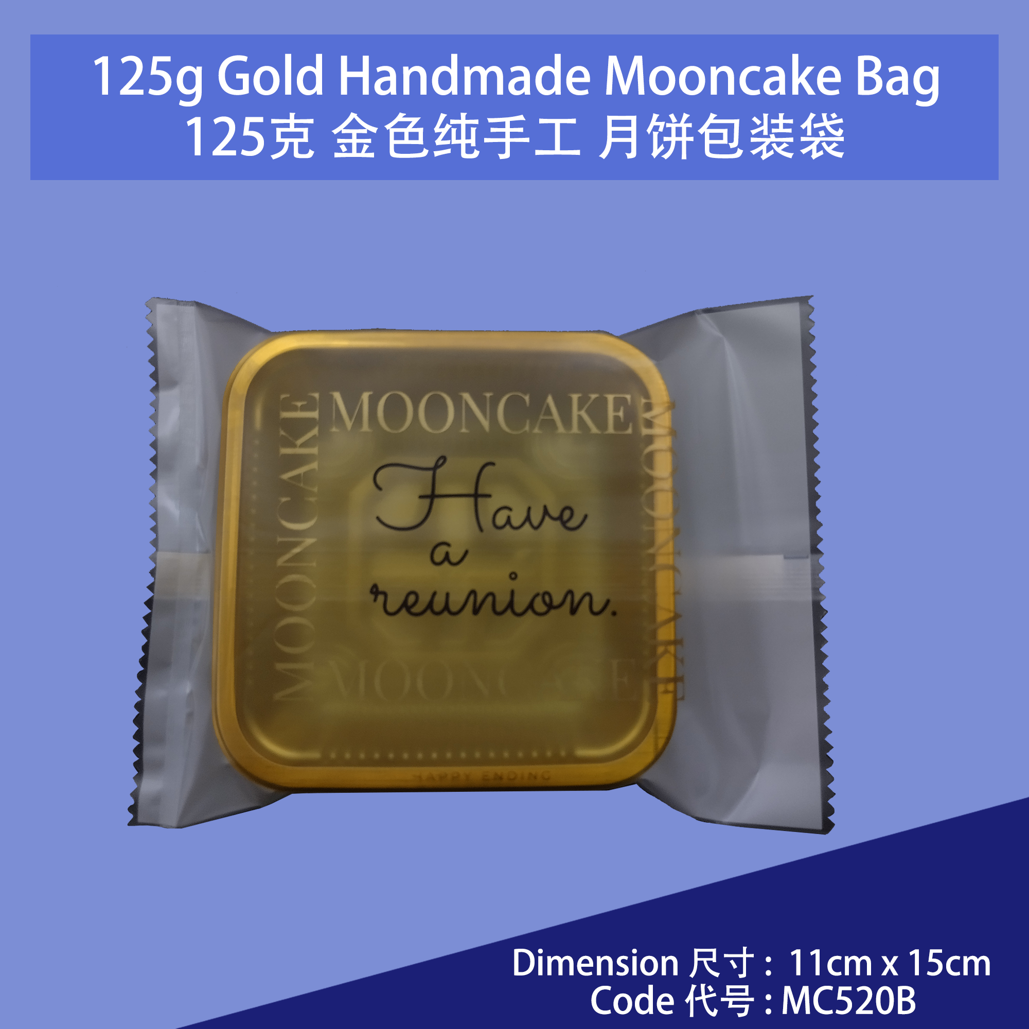 Product Name / 产品名称: 125g Gold Handmade Mooncake Packing Bag 125克金色纯手工 月饼包装袋