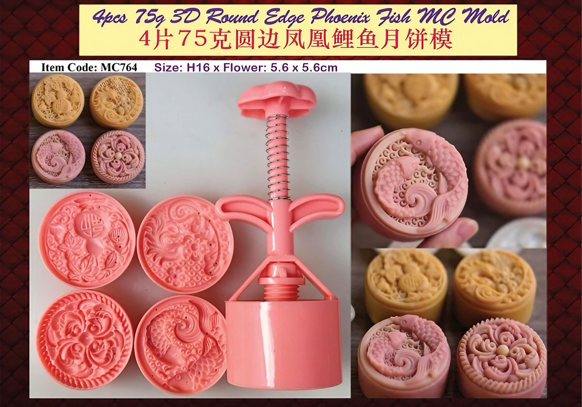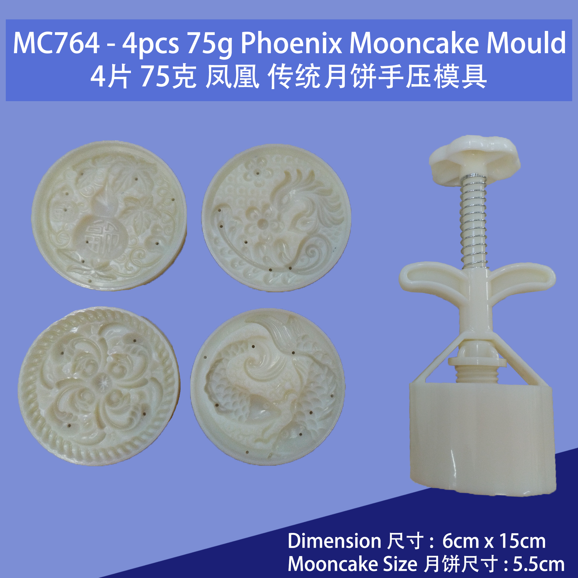 Product Name / 产品名称: MC763 - 4pcs 75g Phoenix Mooncake Plunger Mould 4片 75克 凤凰 传统月饼模具