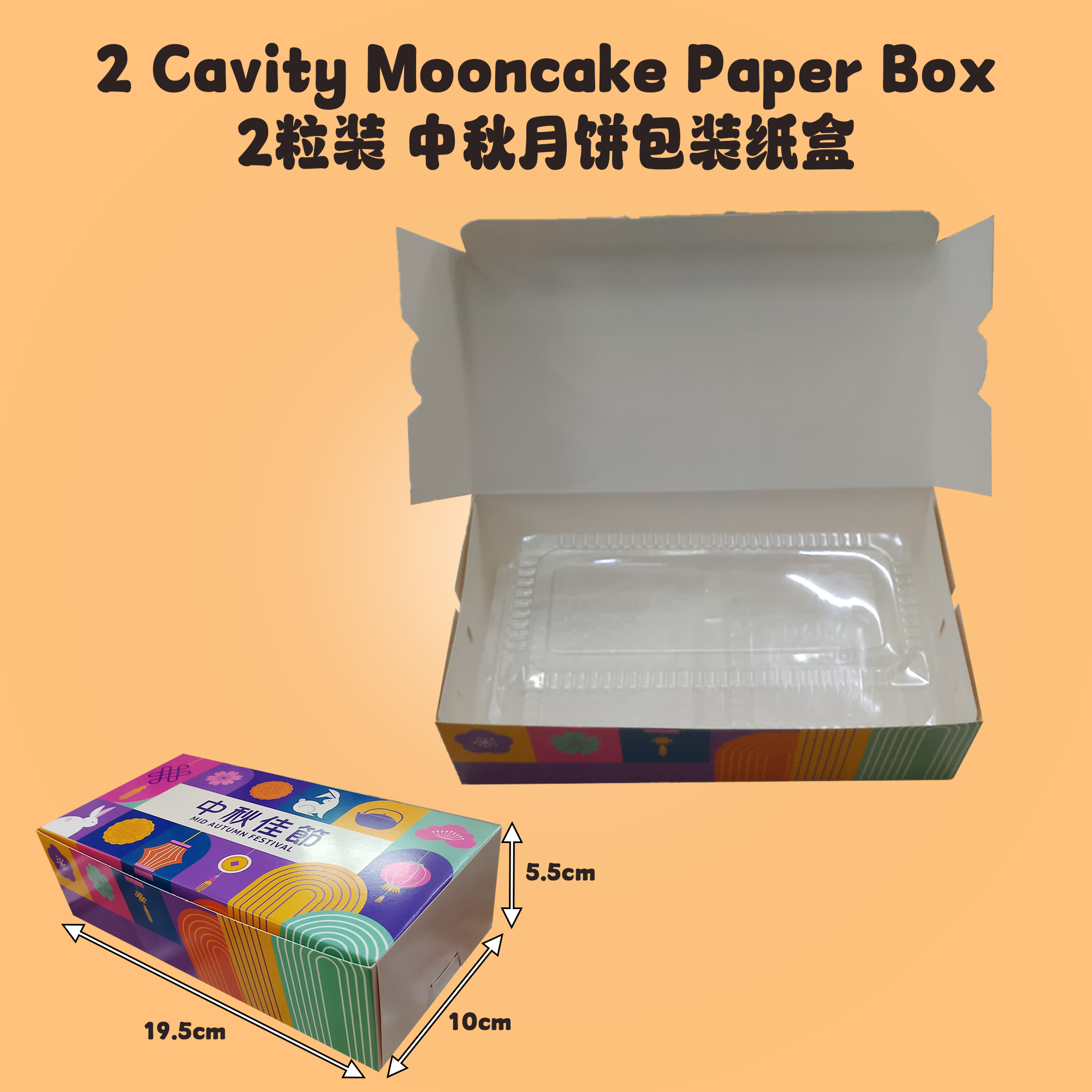 - Fit for 2pcs of 125~150g Mooncake Tray (9~10cm) 能容纳2粒125-150克中秋月饼托盘(9~10cm)