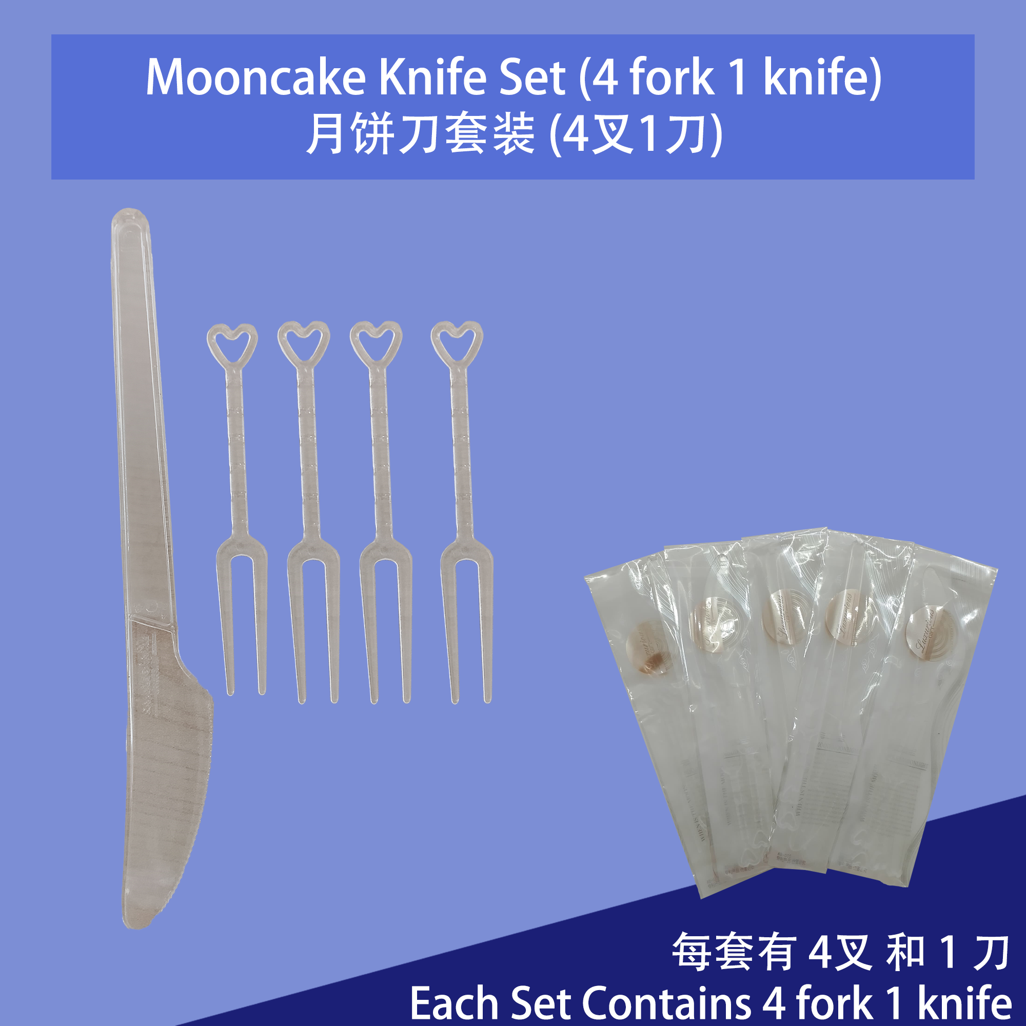 Product Name/产品名称: Mooncake Knife with Fork Set 月饼刀 和 叉 Quantity 数量 : 100套 (每套含有1刀 + 4叉)