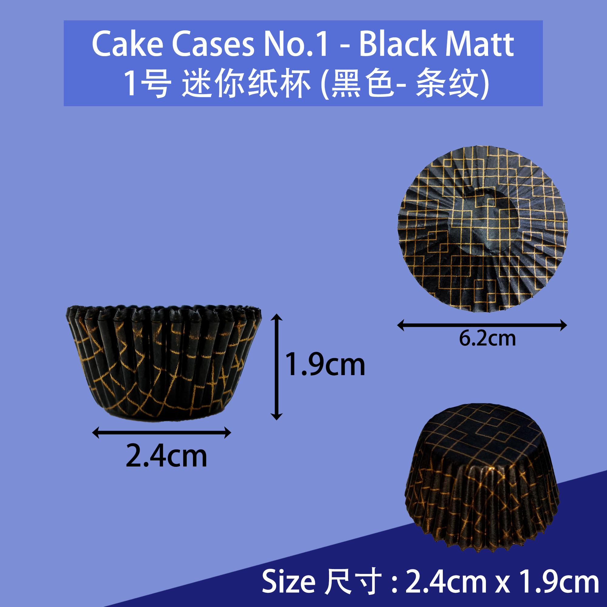 Cake Cases No.1 (Black - Gold Matt) 1号迷你纸杯 (黑色 - 金条纹)