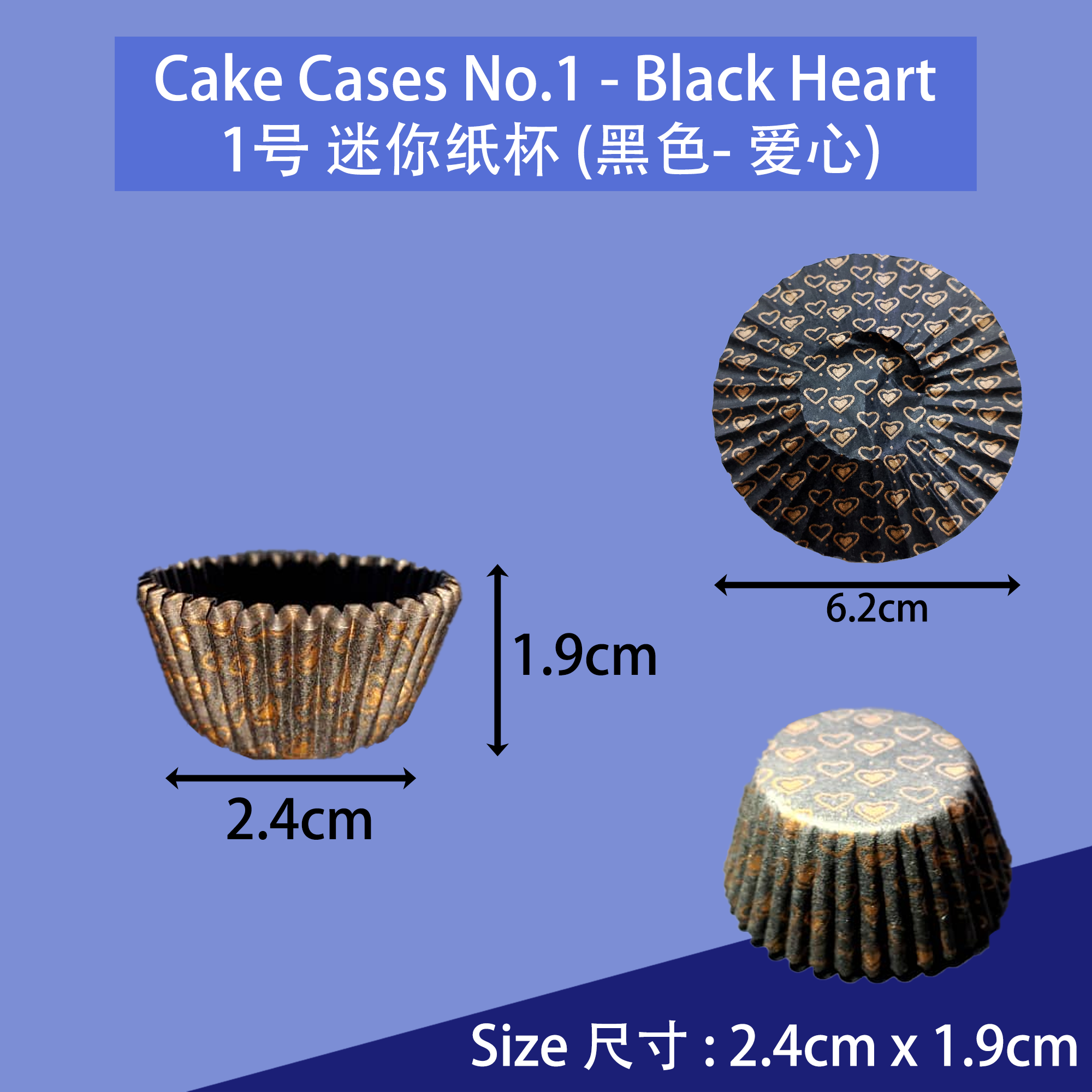 Cake Cases No.1 (Black - Gold Heart) 1号迷你纸杯 (黑色 - 金心形)