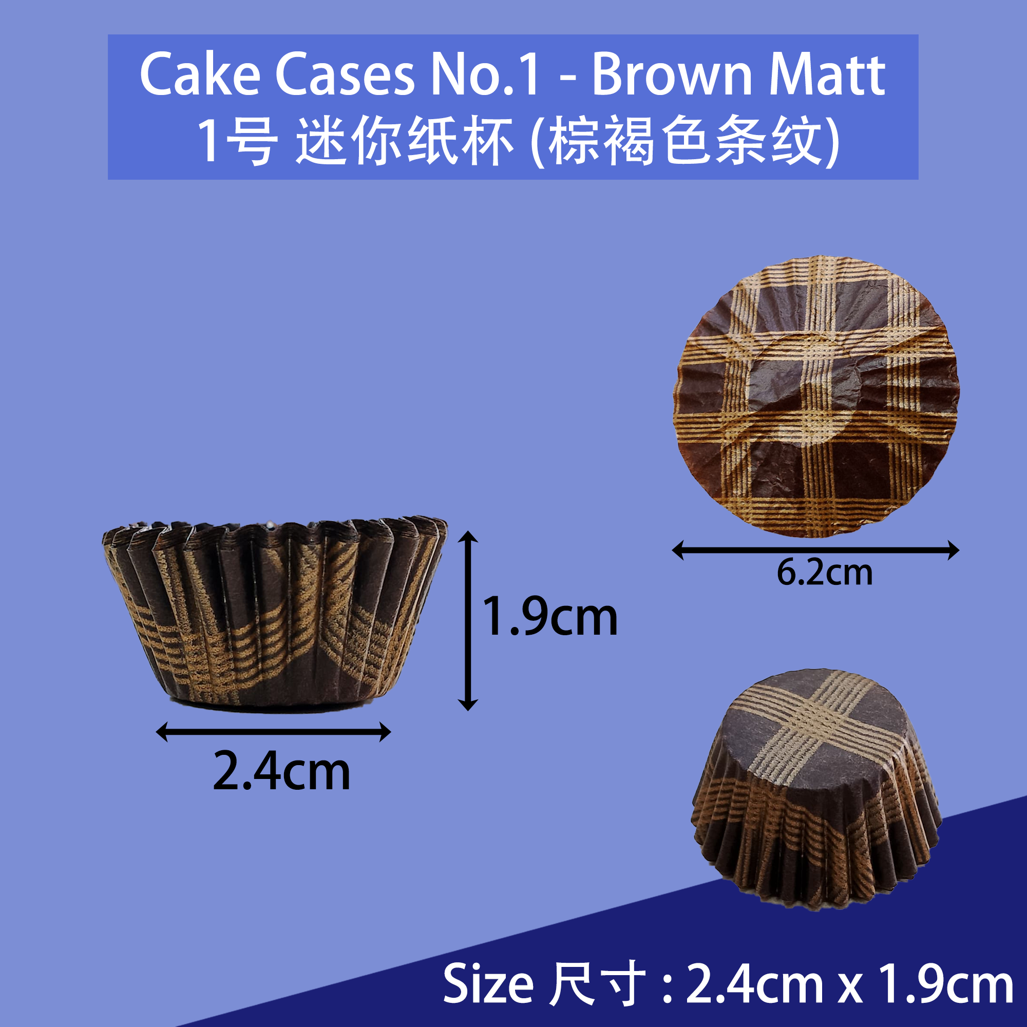 Cake Cases No.1 (Brown - Gold Matt) 1号迷你纸杯 (棕褐色 - 金条纹)