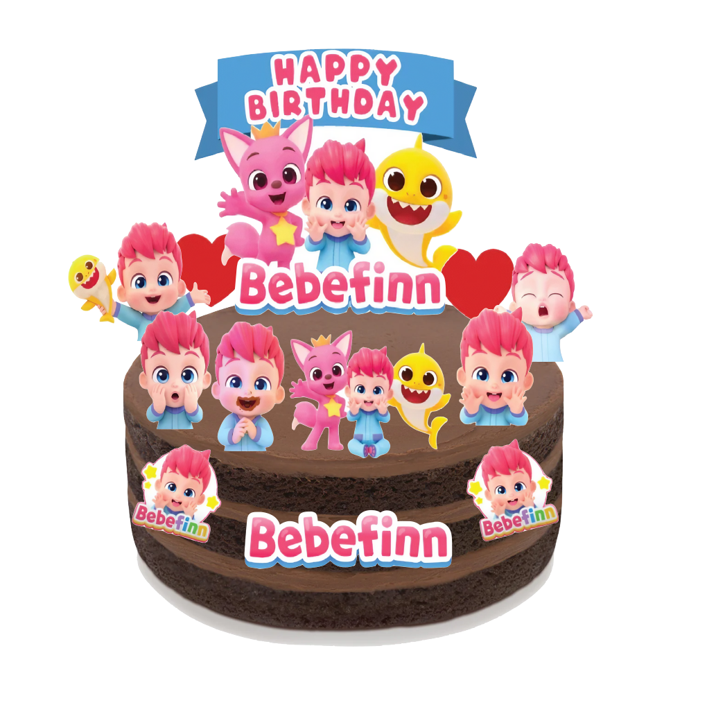 Pink Fong Bebefinn Art Card Cake Topper / Cupcake Decoration Paper Topper - 002