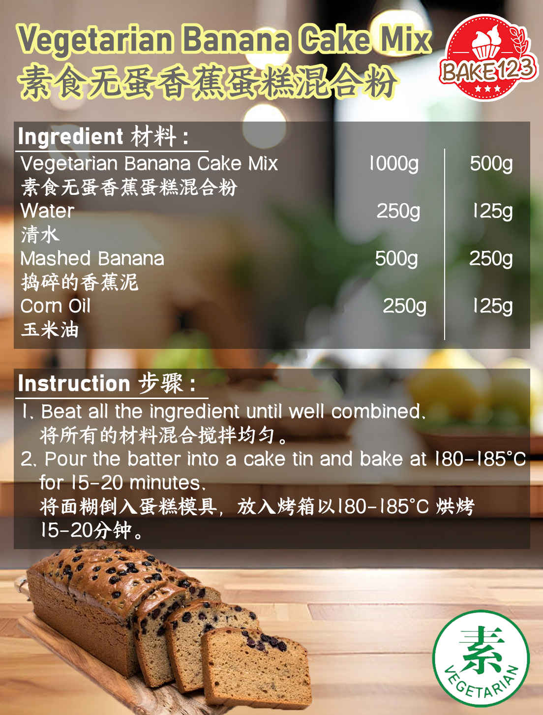 素食无蛋香蕉蛋糕混合粉 – 500克