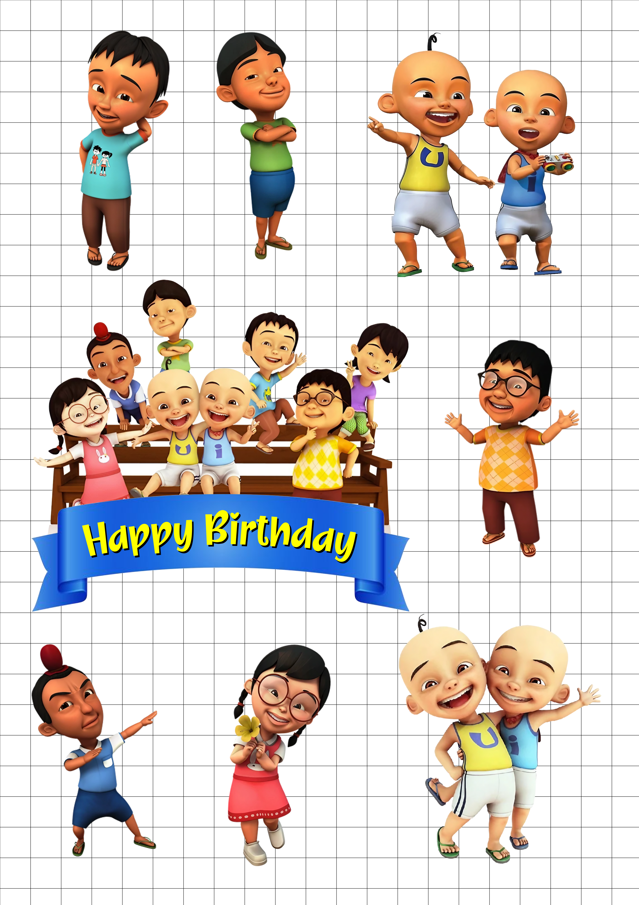 Upin Ipin Art Card Cake Topper / Cupcake Decoration Paper Topper - 026