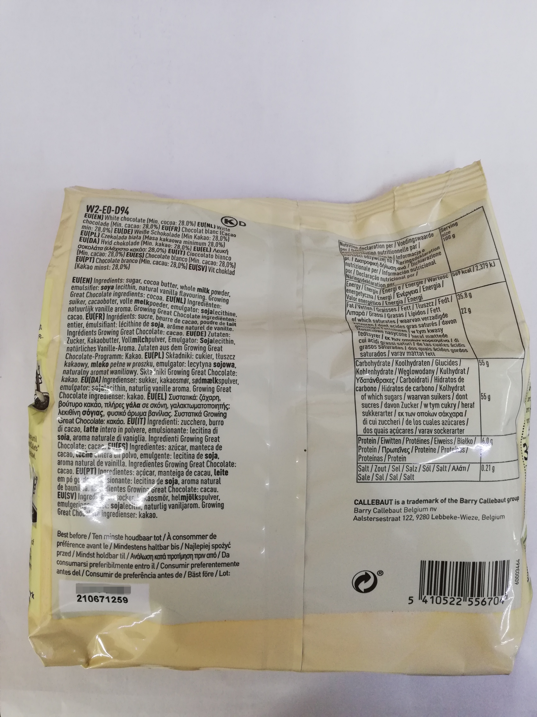 Callebaut W2 White Chocolate 28% 400G