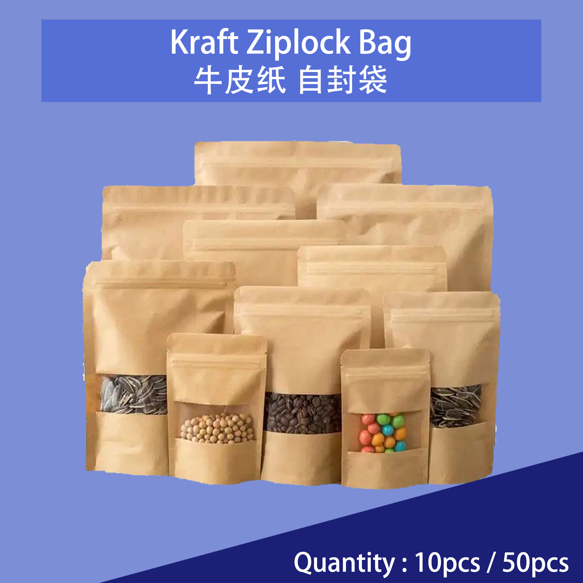 Kraft Zip Bag 15x22cm - 50pcs / Zipper Ziplock Bag