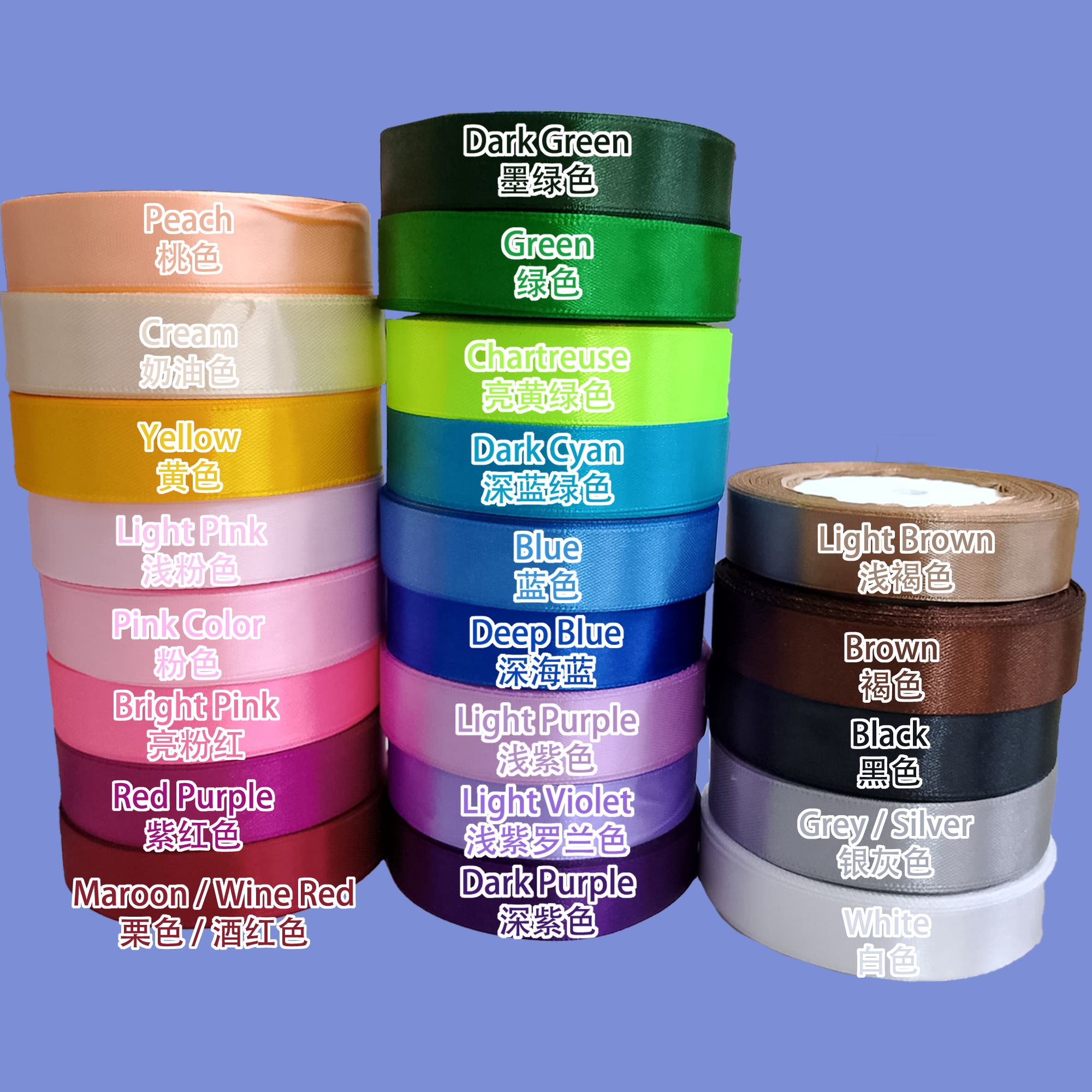 Product Name 产品名称 : 2cm Silk Satin Colour Ribbon 22 Meter 彩带