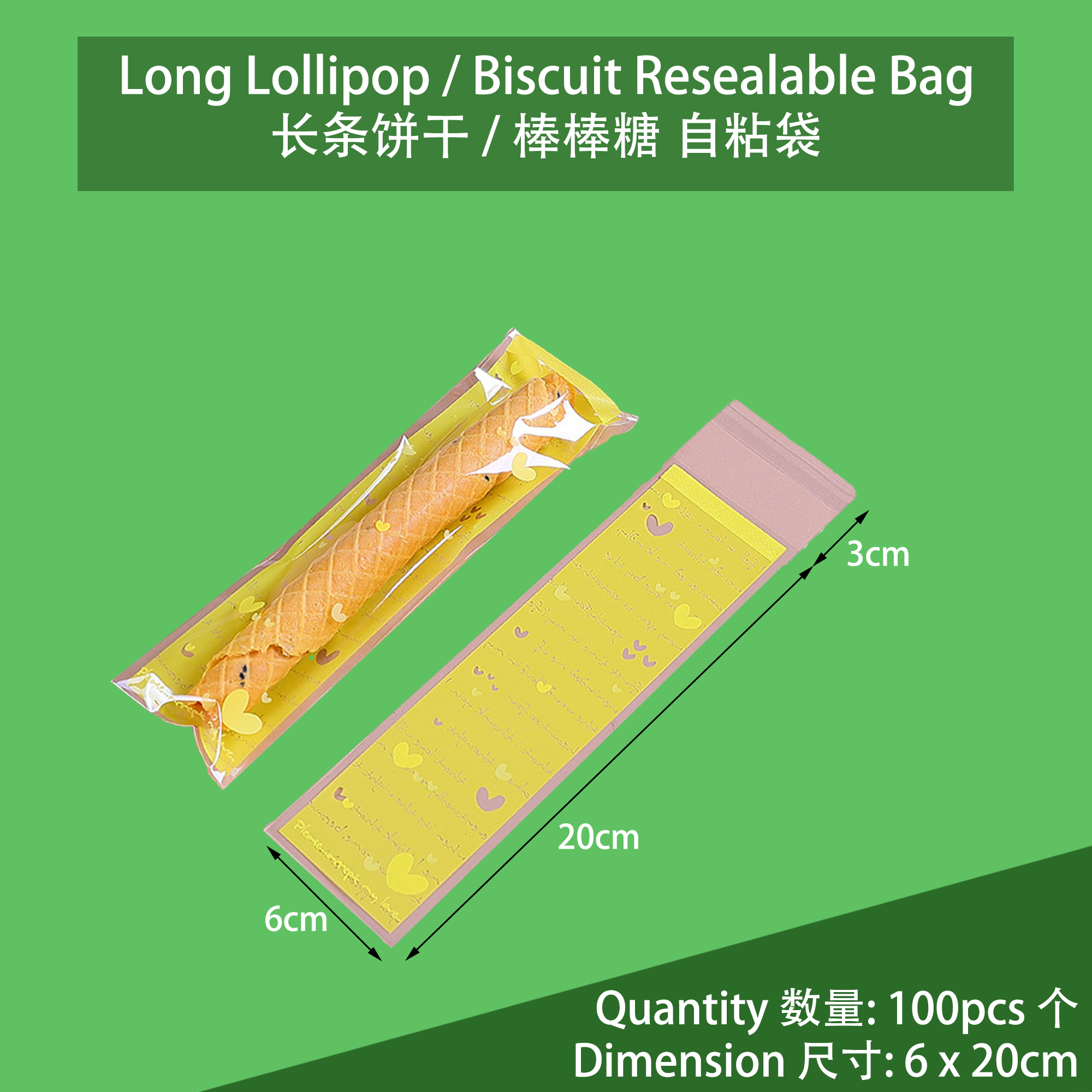 Product Name 产品名称 : Long Lollipop Biscuit Resealable Bag 长条形 棒棒糖/饼干 自粘包装袋