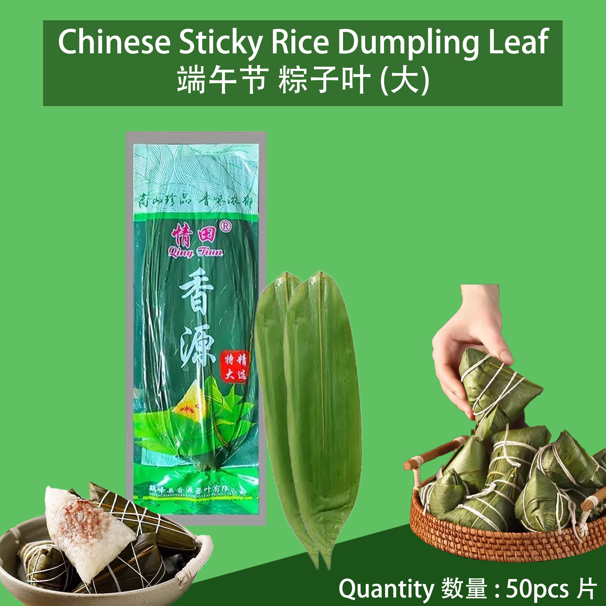 Product Name 产品名称 : Vacuum Packed Dumpling Leaves (Large) 真空包装粽叶 – 大号