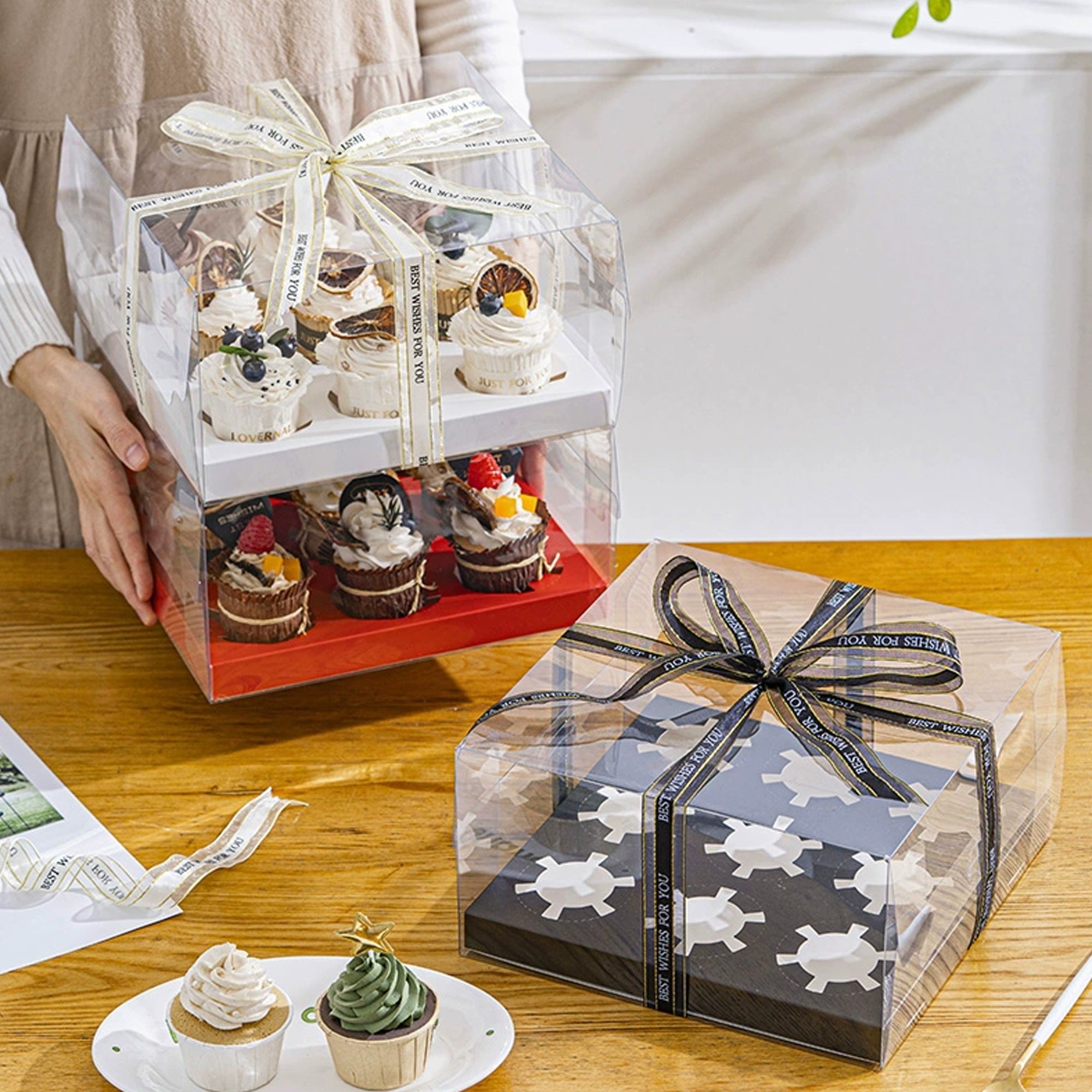 Product Name 产品名称: 2pcs Clear Cupcake Muffin Box + Insert 2粒装全透明杯子蛋糕盒 + 内托