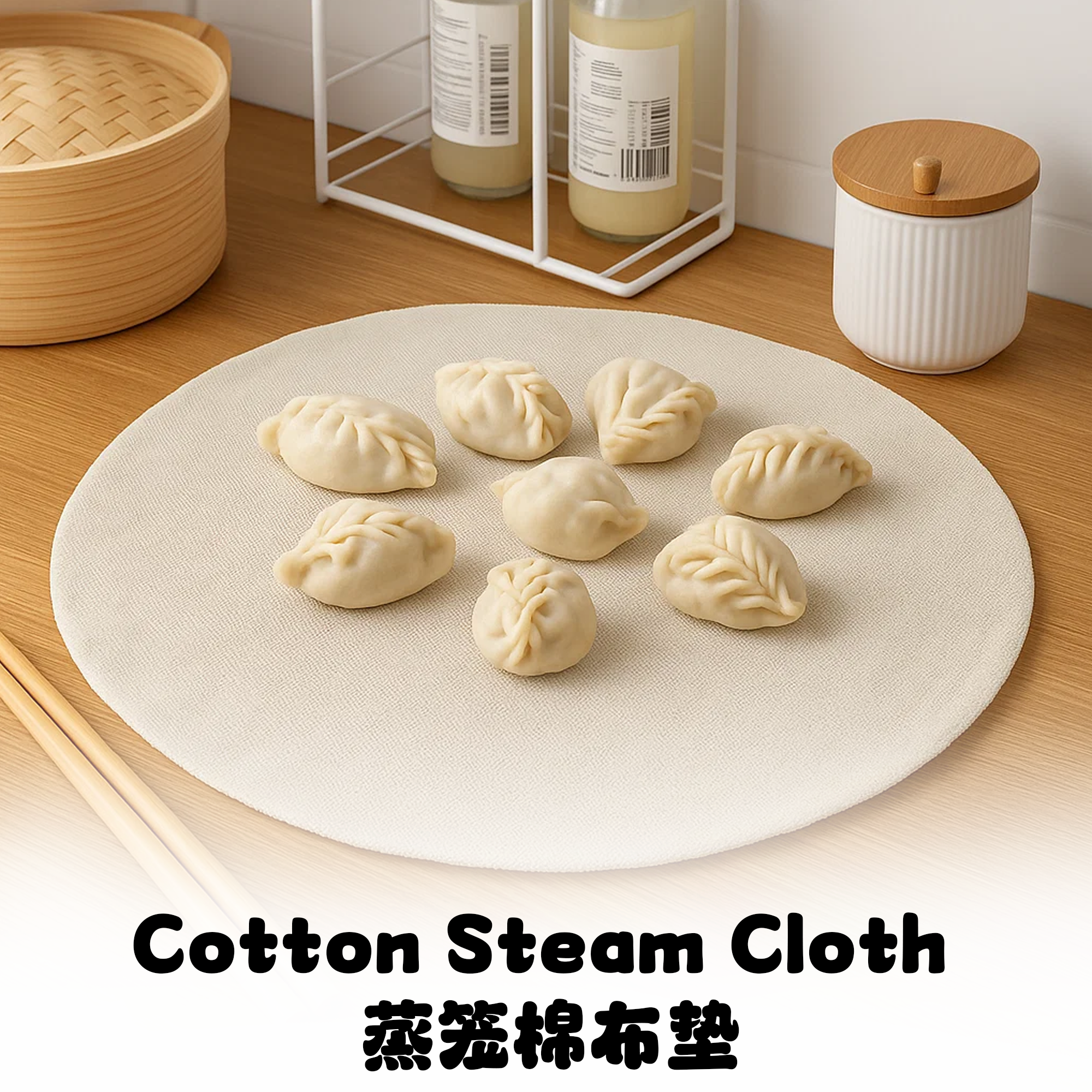 Enjoy hassle-free steaming with this non-stick cotton steamer cloth, perfect for buns, dumplings, mantou, and more / Nikmati proses kukus yang mudah tanpa melekat dengan kain kukus kapas ini, sesuai untuk pau, ladu, mantou dan sebagainya / 使用这款不粘棉纱蒸笼布,轻松蒸煮包子、饺子、馒头等,告别粘底烦恼。
