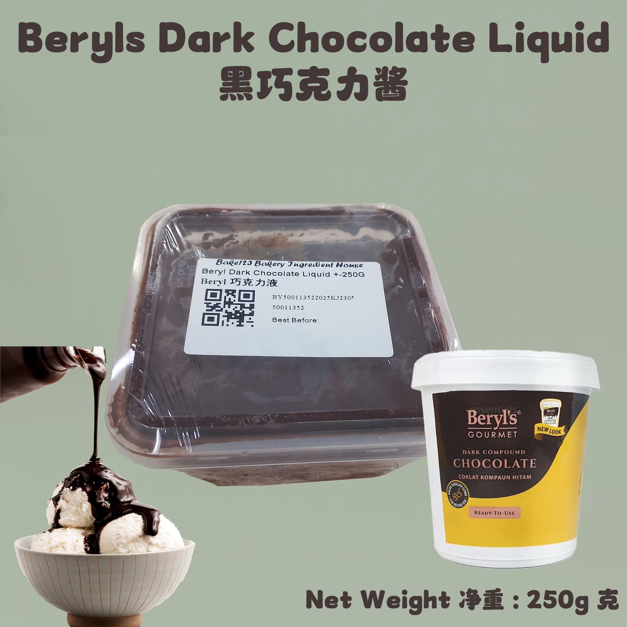 Product Name / Nama Produk / 产品名称 : Beryls Dark Chocolate Liquid 黑巧克力甘纳许
