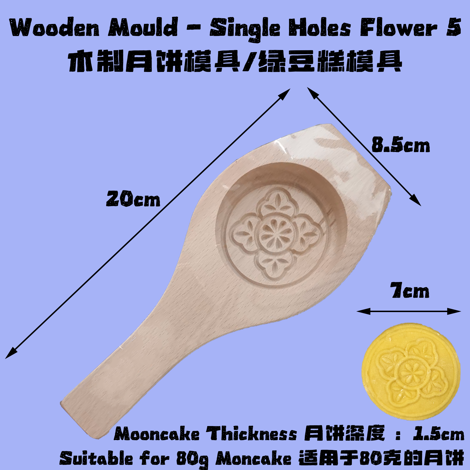 Mould Dimension 糕点尺寸 : 7cm x 1.5cm ( Around 80g Mooncake / Kuih)