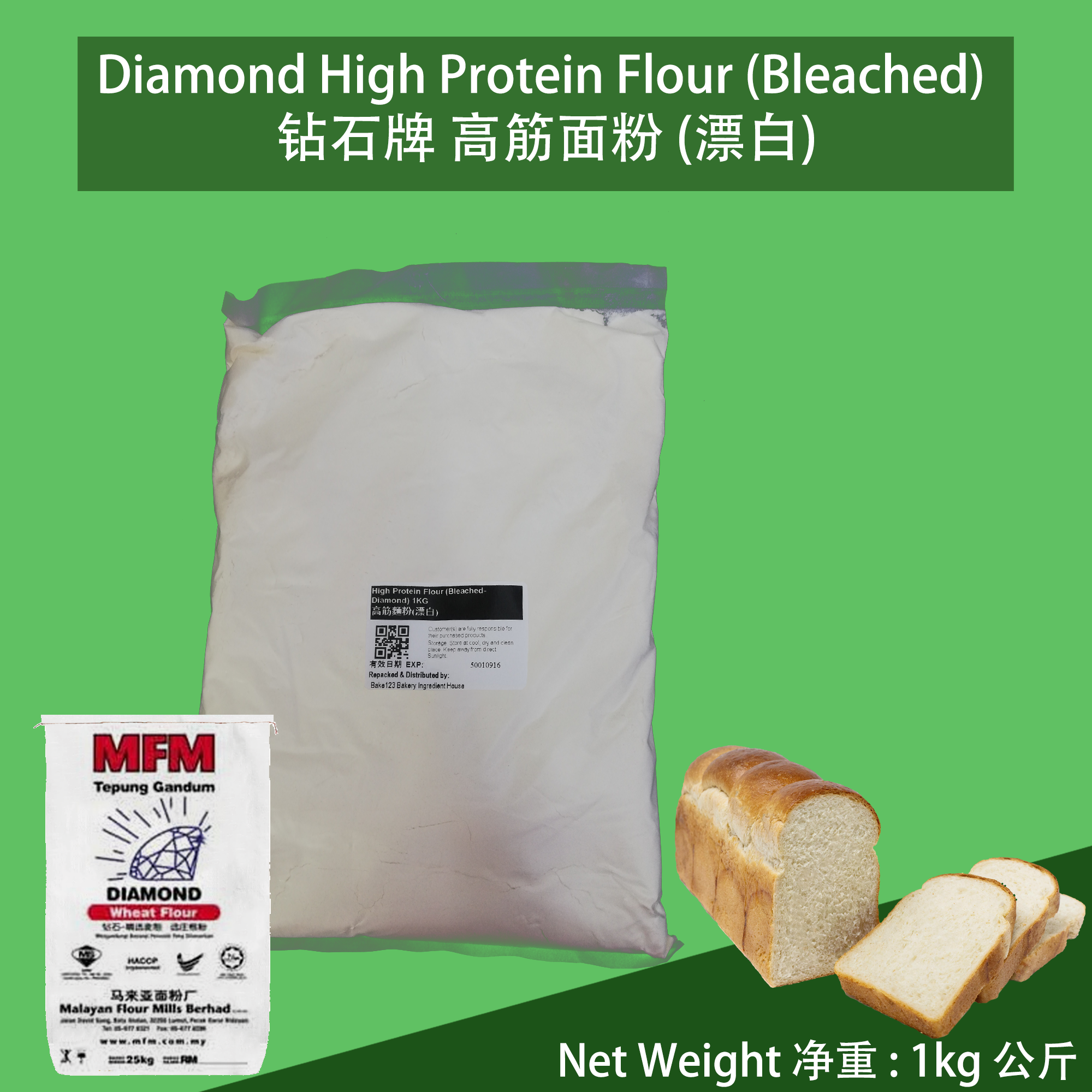 Diamond Brand High Protein Flour 钻石牌高筋面粉 – 1k公斤g