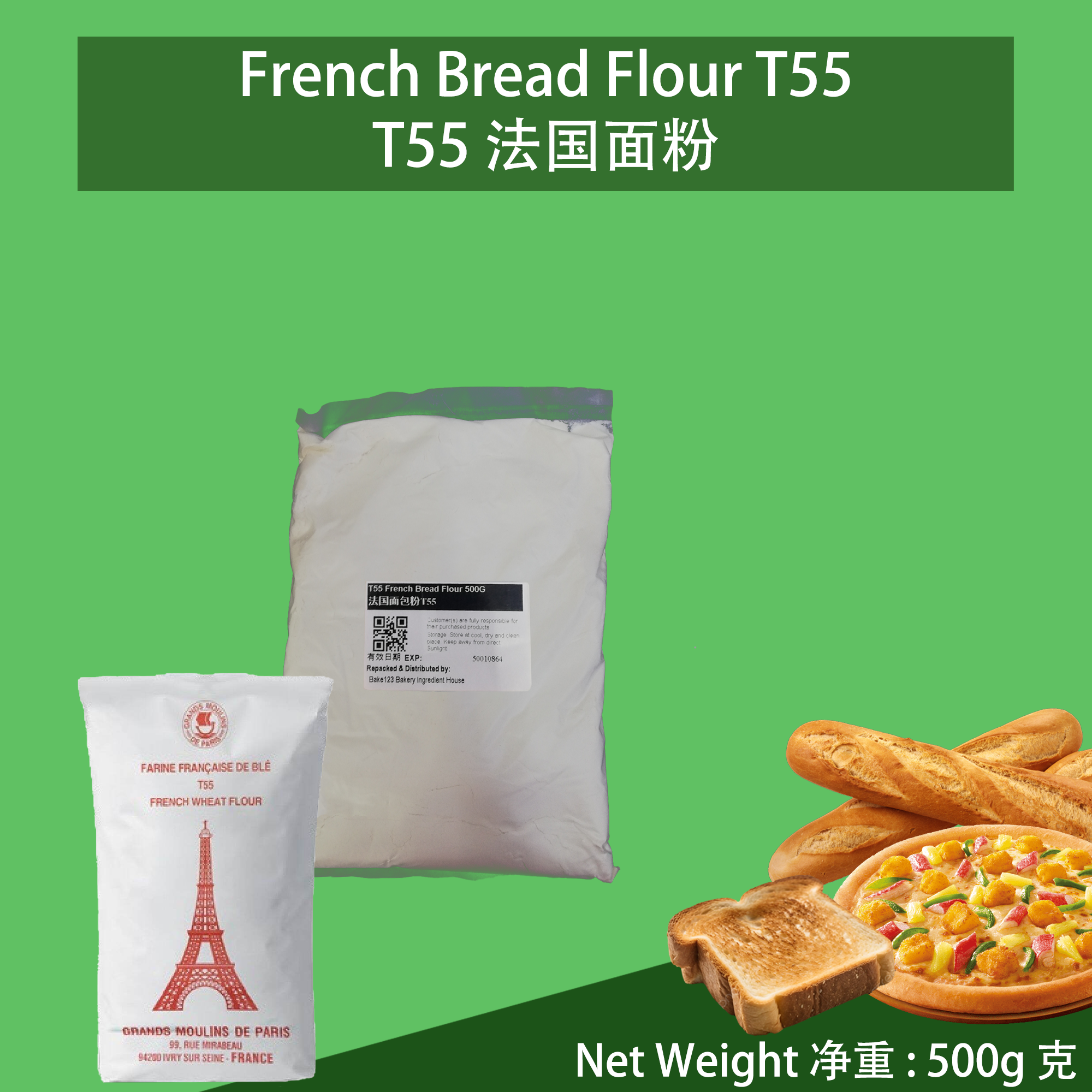 Product Name 产品名称: T55 French Flour / Baguette Bread Flour 法国T55法棍面粉