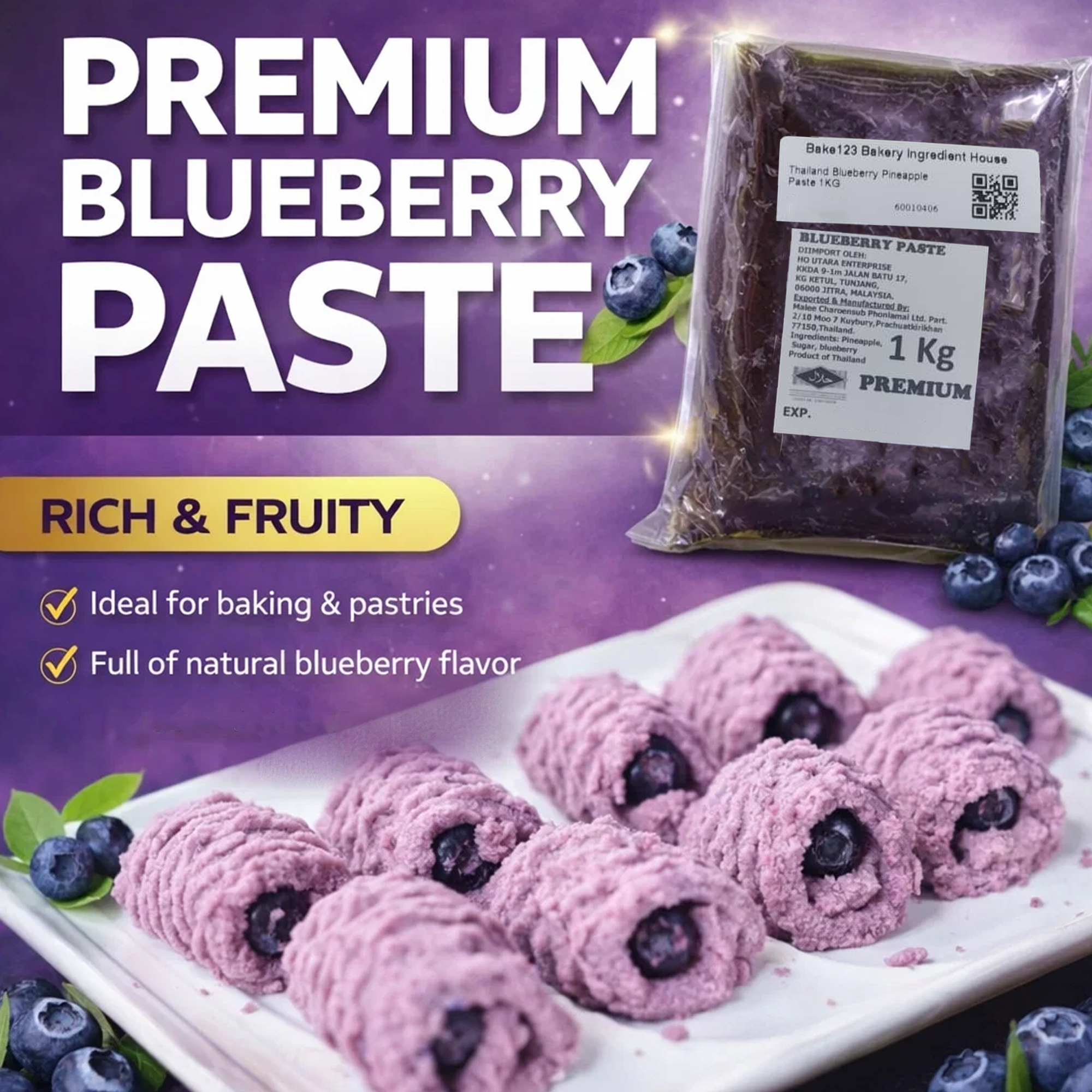 Product Name 产品名称 : Thailand Blueberry Pineapple Paste 泰国蓝莓果酱(混合凤梨_