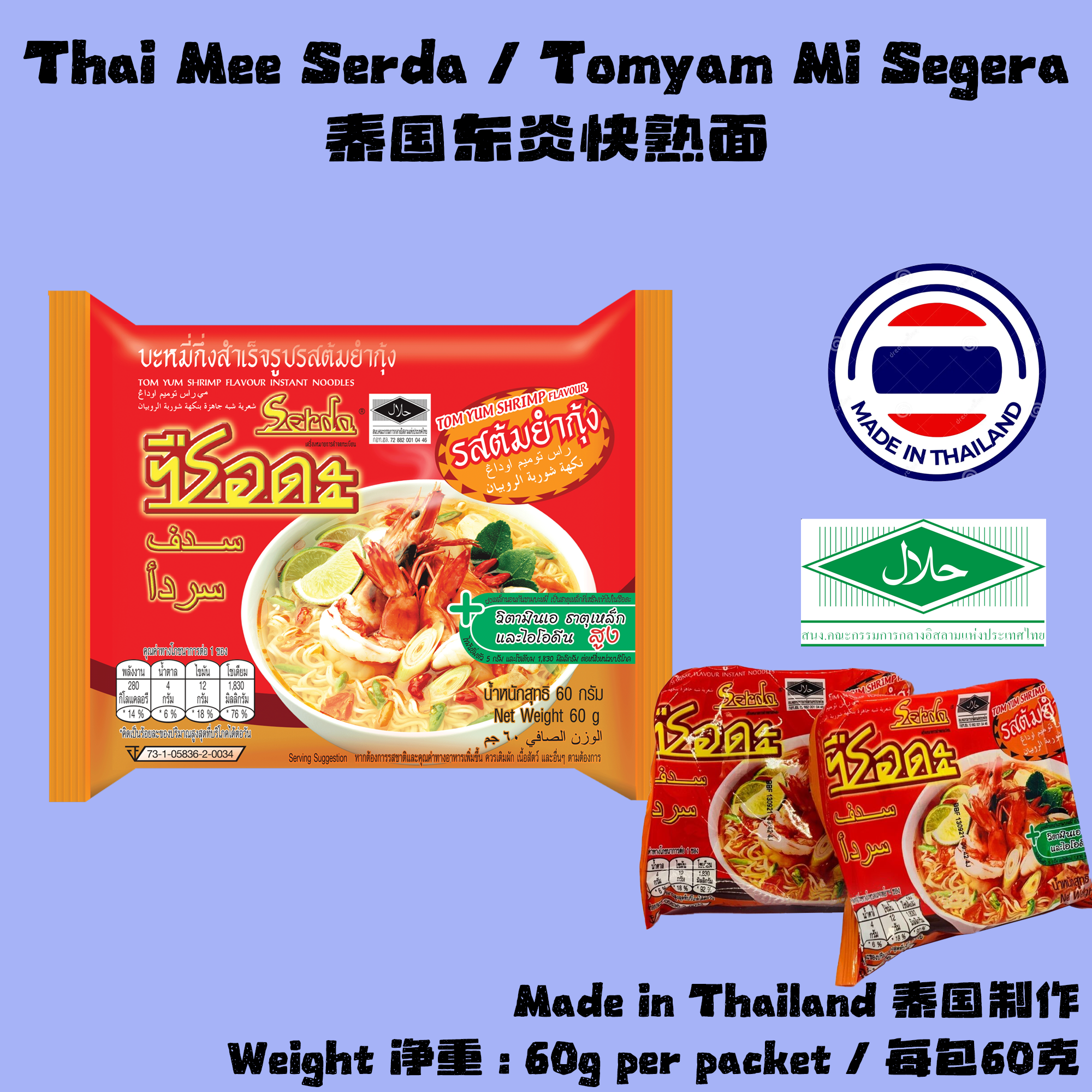 Disahkan Halal oleh pihak berkuasa Thailand, sesuai untuk pengguna Muslim