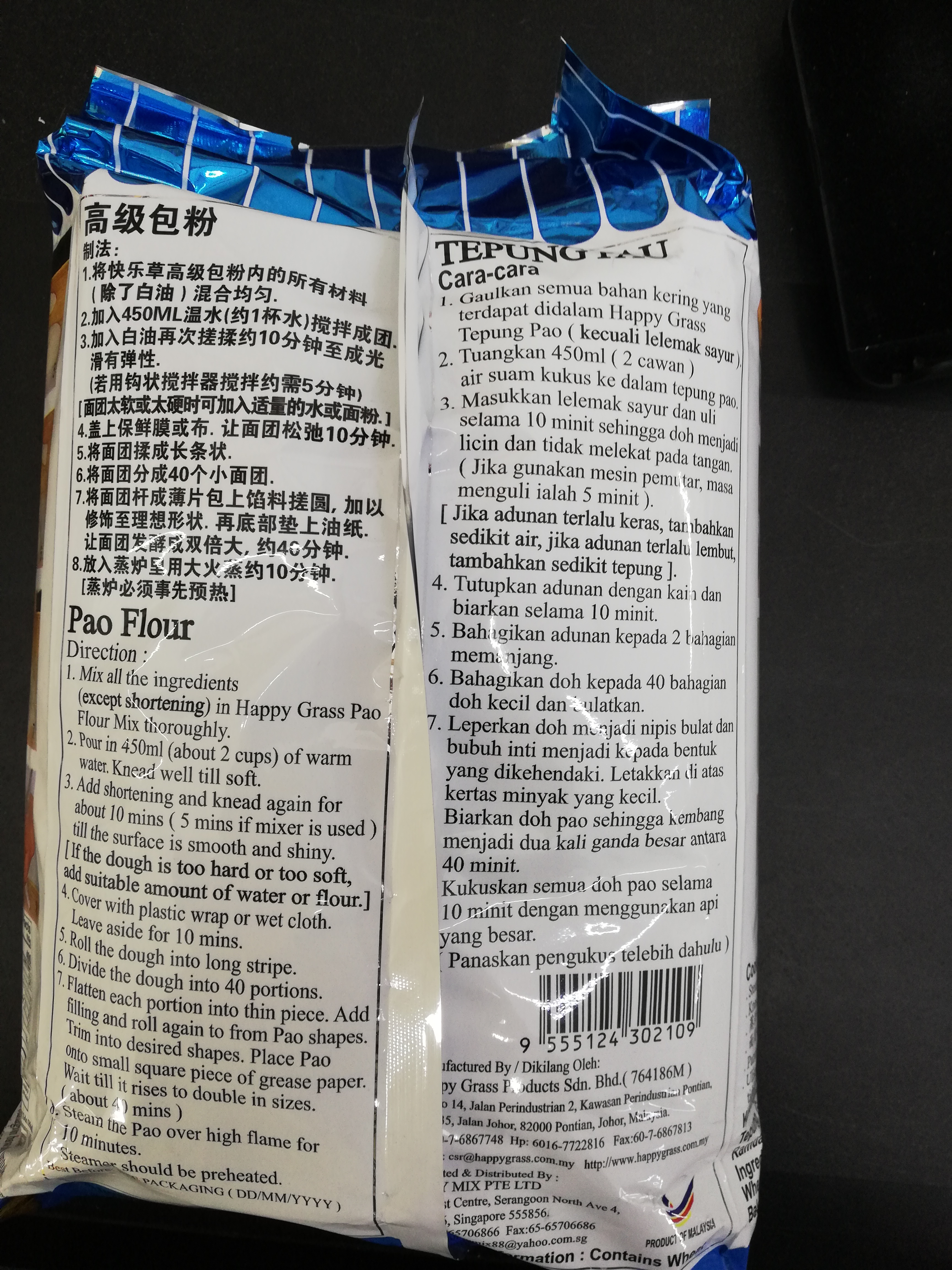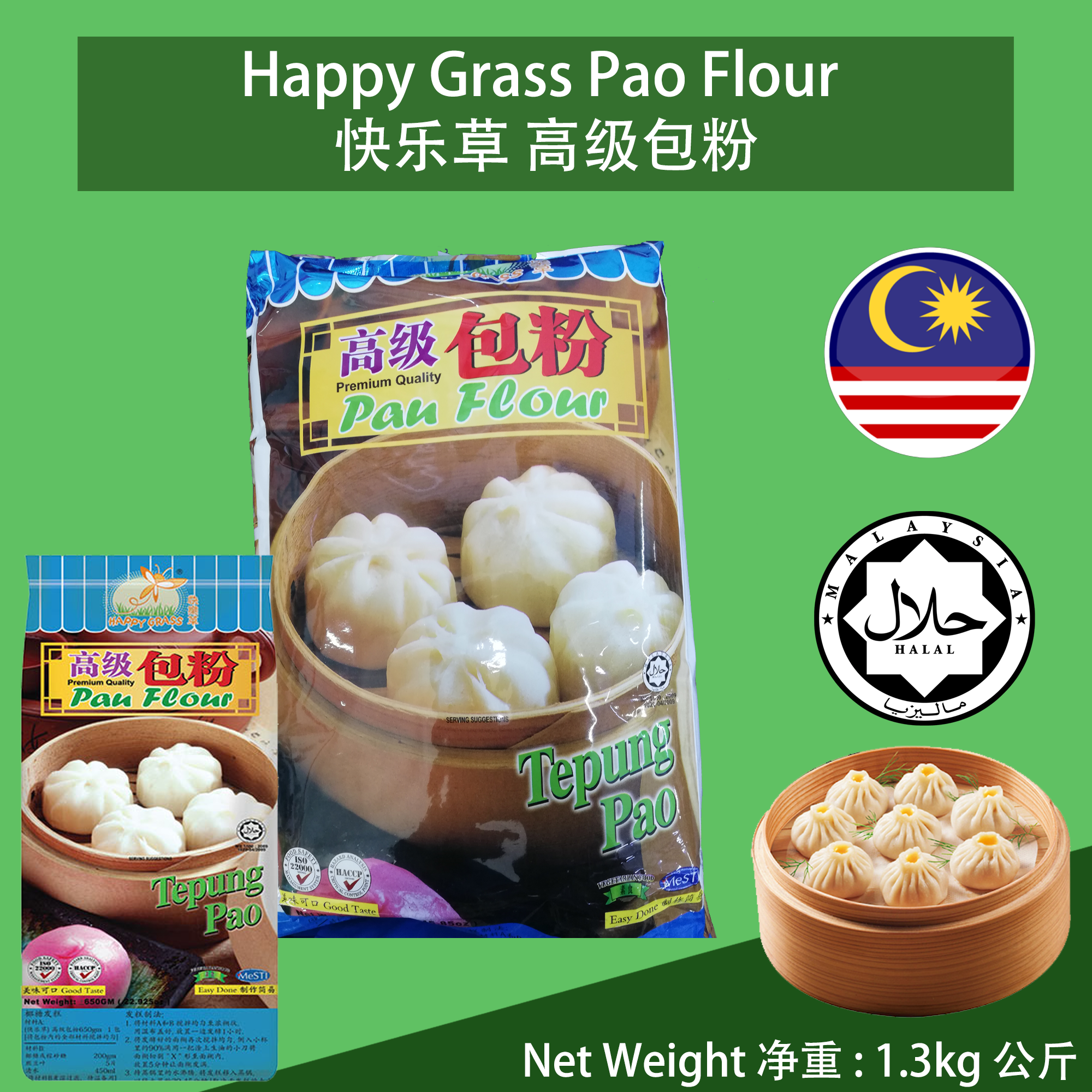 Made in Malaysia 马来西亚本地产品: Proudly produced in Malaysia, Happy Grass Pao Flour delivers high quality and authentic local flavor for your bao-making needs. 这款包粉由马来西亚生产,提供高品质和正宗的本地风味,完美满足您的包子制作需求。
