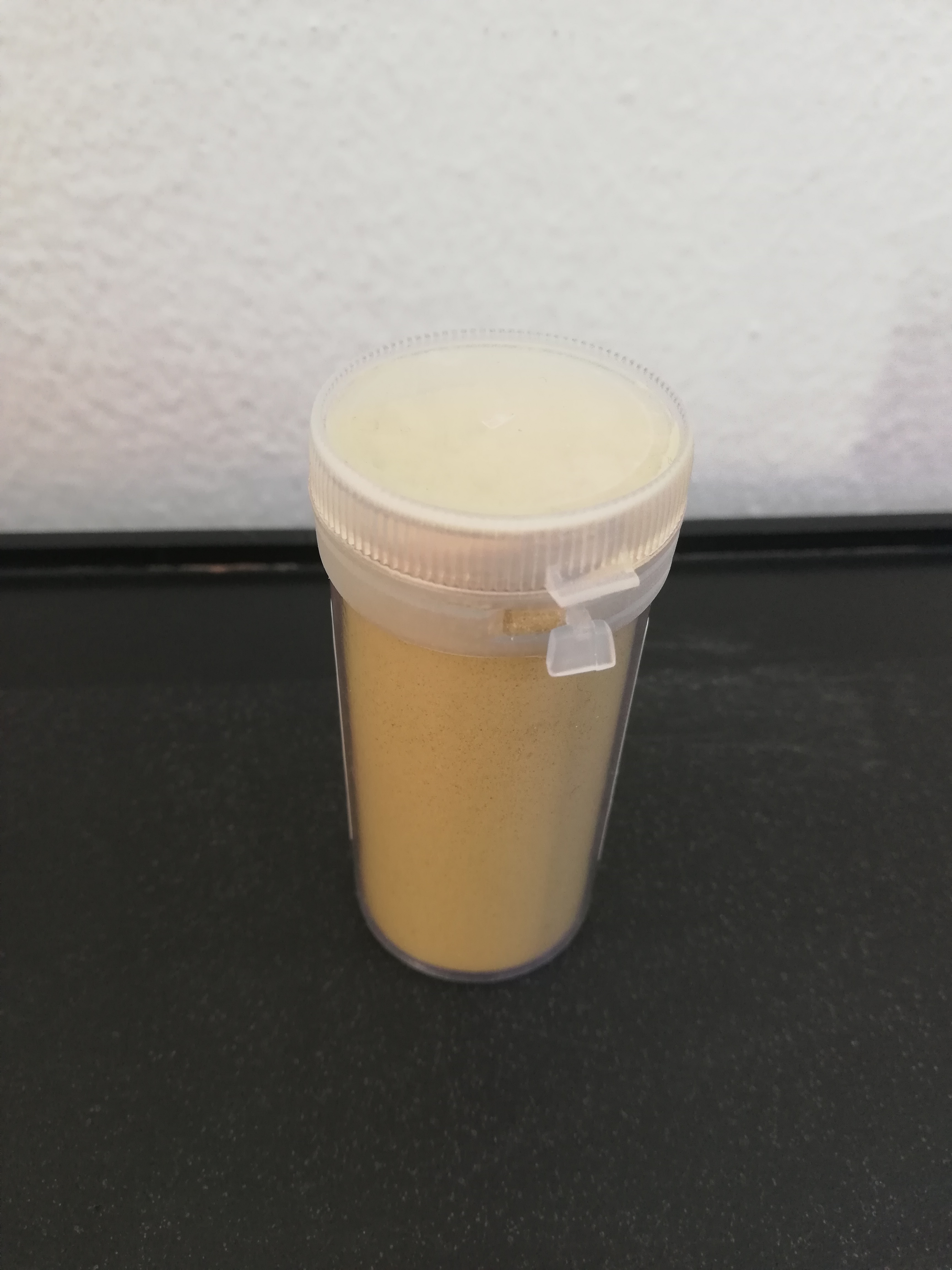 南瓜黄粉是天然颜色粉,本身高含糖,粉末不添加抗结剂,随着天气温度升高,粉末很容易结块,并不是受潮/过期变质问题,而是非常正常的现象,放进冰箱冷藏几小时后再压碎或过筛,水溶即可食用